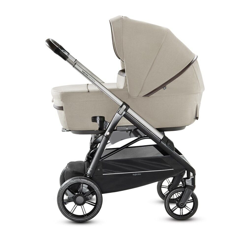 Люлька коляски Inglesina Aptica виконана з ударостійкої пластмаси і її можна кріпити на заднє сидіння машини, з авто комплектом Kit Auto (купується окремо). Дно люльки має вентиляційні отвори. Дитині завжди буде комфортно і тепло спати в колясці в будь-яку пору року. У великого капюшона є секція, яка призначена для вентиляції та для догляду за вашим малюком. Підголовник регулюється зручною ручкою, яка розташована зовні люльки. Матрацик в колисці виконаний з губчатого матеріалу з рівномірно розподіленими аераційними отворами (40 шт.). Поверхня матрацика, яка знаходиться в постійному контакті зі шкірою малюка, виконана з повітропроникного бамбукового волокна, має гіпоалергенні та антибактеріальні властивості. Підставка з об'ємної сітчастої тканини покращує вентиляцію і запобігає вологоутворення; форма матраца забезпечує правильне положення на спині і розподіл навантаження на хребет дитини; тканинні елементи люльки з'ємні і їх можна прати в холодній воді при температурі не більше 30°С.