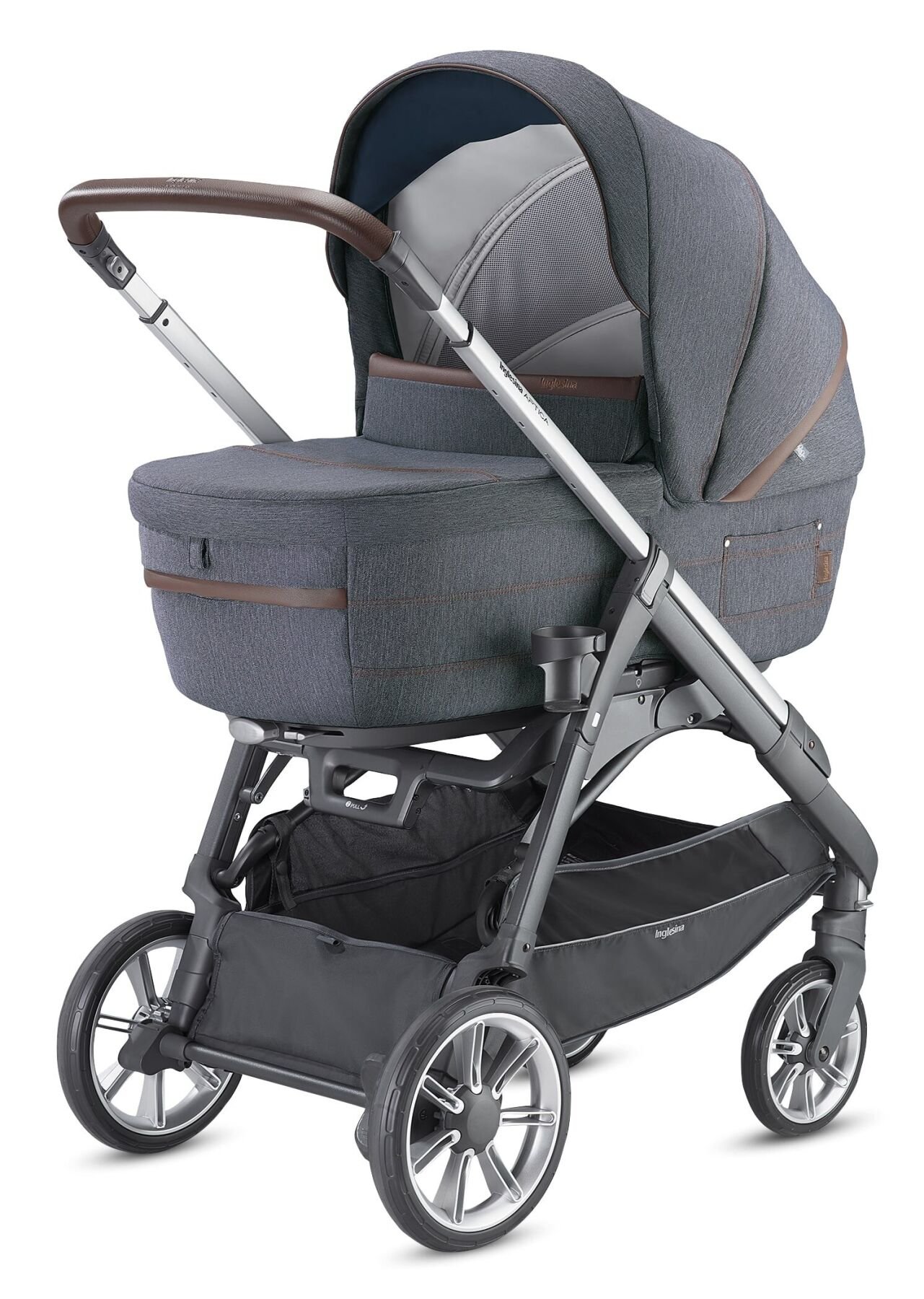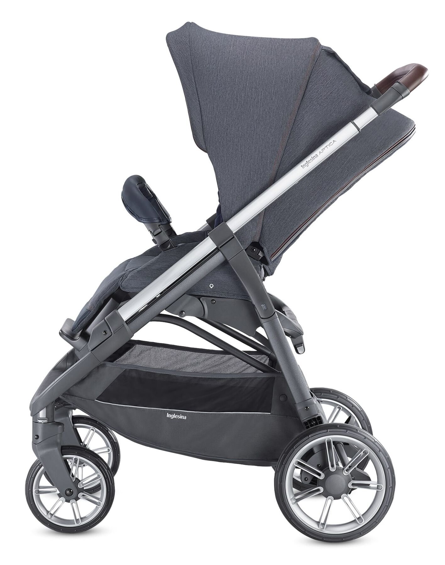 Шасі коляски легко складається і розкладається одним рухом руки. Коляска стійка у складеному вигляді, при цьому ні тканинна оббивка, ні ручка не торкаються підлоги. За допомогою системи Easy Clips: люлька для новонароджених, прогулянковий блок і автокрісло можуть встановлюватися як обличчям до мами, так і обличчям від мами. У комплекті з коляскою Інглезіна Аптіка йде зручний підстаканник для пляшечок. Великий сітчастий кошик для покупок (вагою до 3 кг). Шасі виконано з полегшеного алюмінію.