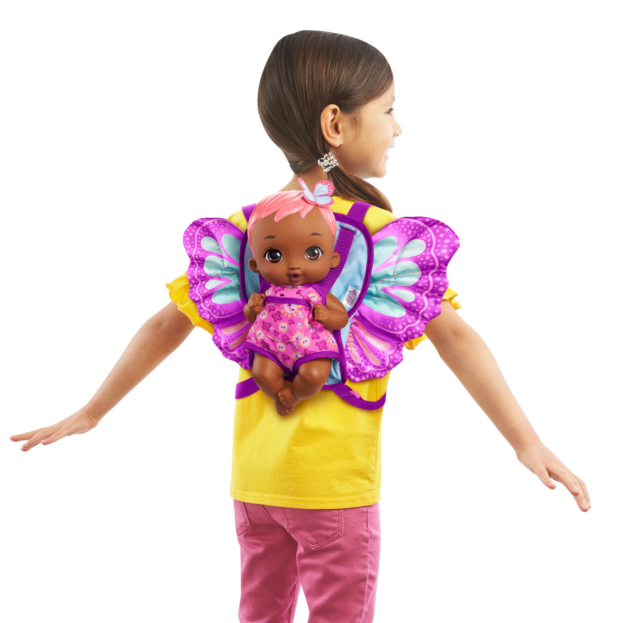 Утримувач для пупса My Garden Baby Барвисті крильця стане прекрасним аксесуаром для дітей, які люблять гуляти із пупсиками My Garden Baby розміром 30,5 см. Відрегулюйте ремінці відповідно до розміру ляльки та зросту дитини. Рюкзак-утримувач зручно носити як на спині, так і спереду.