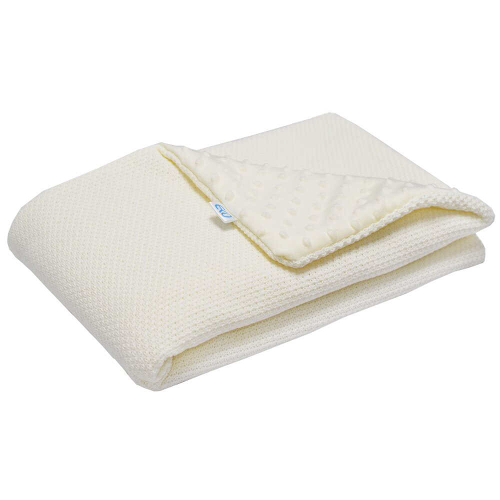 Двосторонній плед: одна сторона - сучасний матеріал мінки, інша - в'язане трикотажне полотно з бавовни (35%) і акрилу (65%).