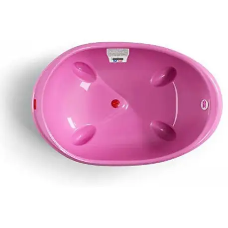 Особливості: зручна ергономічна форма, відсутність кутів дозволяє малюку комфортно розташуватися у ванночці, у нижній частині модель має стійкі ніжки, має отвір для зливу, закритий ключем, і термодатчик, що дозволяє стежити за температурою води всередині, виготовлена з безпечного матеріалу.