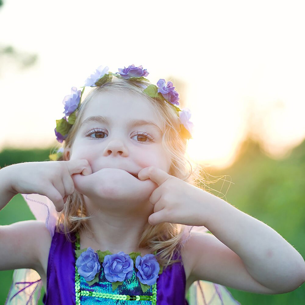 Дітям, які люблять моду та мають розвинене відчуття стилю, сподобається класний вінок Great Pretenders Rose Garland. Його можна подарувати найкращій подрузі або носити самій. Він не перетискає голову і прекрасно доповнить образ. Цей аксесуар має основу, прикрашену квітками всіх відтінків бузкового кольору, а також стрічками.