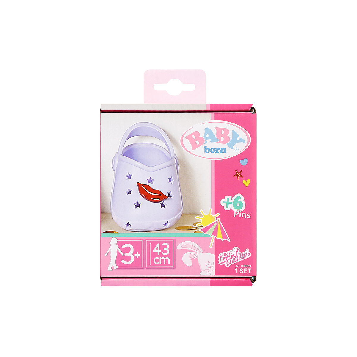 Бузкові сандалі з комплектом значків подарують ще більше варіантів для створення образу Вашої BABY born! Значки на сандаліях можна комбінувати та цим зробити взуття підходящим для ще більшої кількості вбрань!