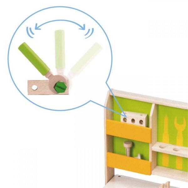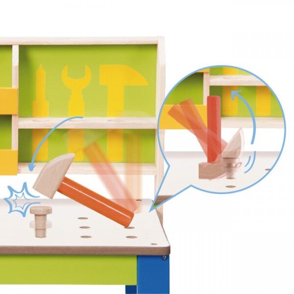 Сюжетно-рольовий набір «Стіл теслі» таїландського бренду Wonderworld. З допомогою такого набору дитина створить власне робоче місце теслі. Тепер юні майстри можуть допомагати татові лагодити щось за допомогою інструментів з набору. Іграшка розвиває творчі навички та вміння використовувати основні інструменти, а також розвиває дитину фізично. Деталі з деревини та фанери.