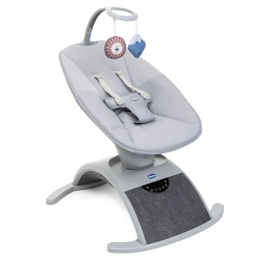 - Функціональний. Виконує 8 унікальних рухів, адаптуючись до потреб малюка впродовж дня: гойдання, колисання, прогулянка, після прийому їжі, автомобіль, релакс, верхова їзда, гра.