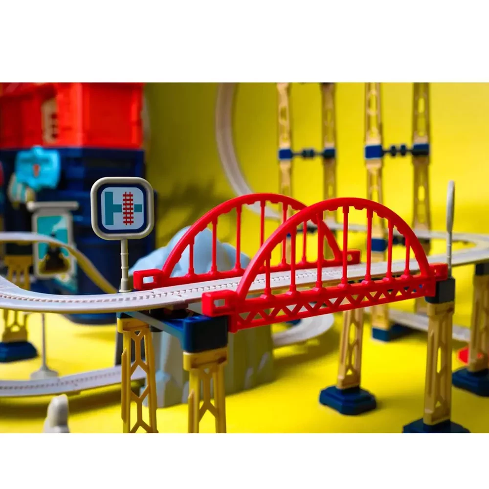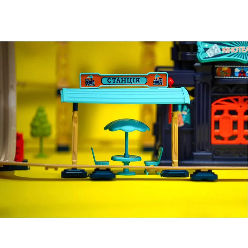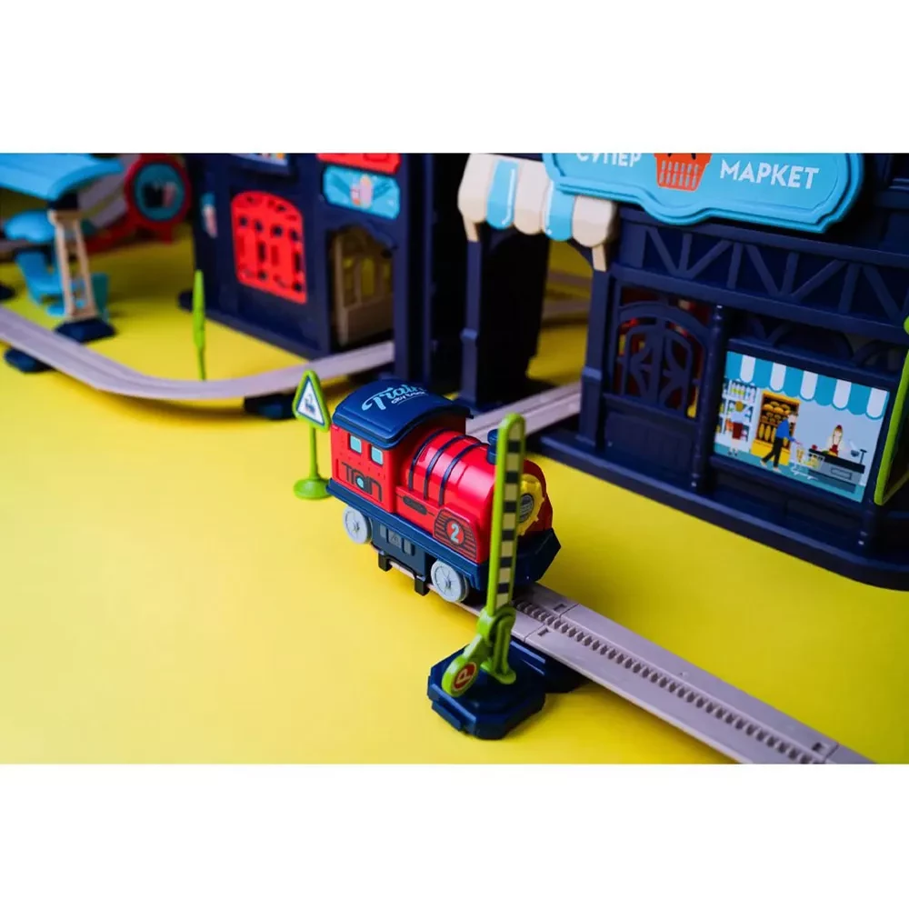 Головний герой набору – паровозик, який легко долає перешкоди та виконує захопливі трюки. Яскраві кольори, міцні матеріали та продумана конструкція роблять цей комплект чудовим подарунком для маленьких любителів залізничних пригод.