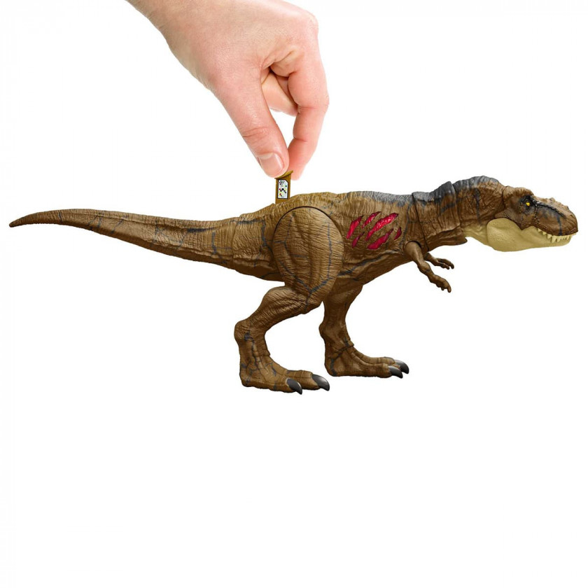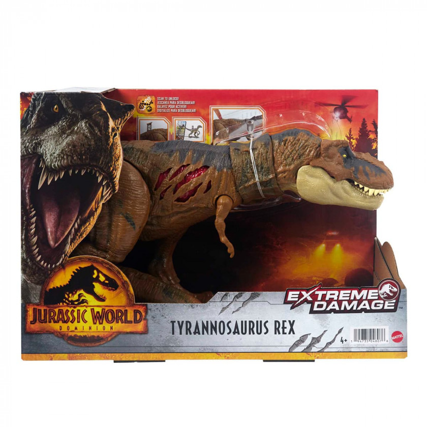 Особливості збільшеної фігурки динозавра Mattel Jurassic World Ті-рекс Небезпечні супротивники: просто скануйте прихований ДНК-код будь-яким смарт-пристроєм, щоб за допомогою безкоштовної програми Jurassic World Facts потрапити у захоплюючу доповнену реальність; смарт-пристрій не входить до комплекту.