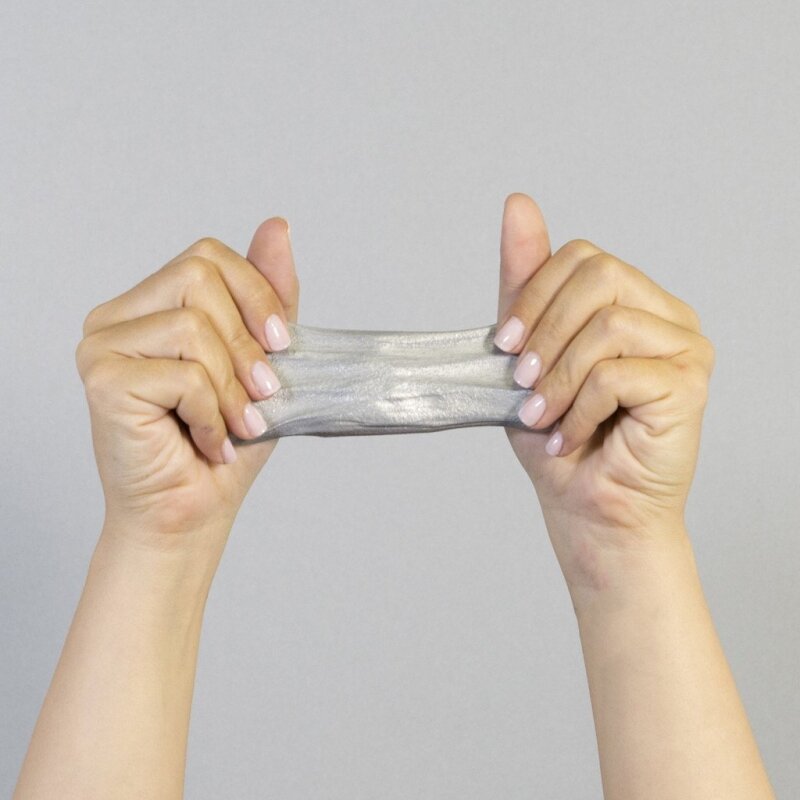 Ртуть викликає найрізноманітніші емоції, її бояться і не даремно, елемент дійсно небезпечний. Але цей хімічний елемент притягує своїми унікальними властивостями і зовнішнім виглядом: це єдина речовина, що перебуває при кімнатній температурі в рідкому вигляді.Жуйка для рук має властивості хімічного елементу, але не містить ртуті! Хоча схожа на неї як дві краплі води. Нетоксична і безпечна. Вміє вести себе як рідина, тверде і м'яке речовина, стрибати, ніби гумовий м'ячик. А ще цікаво реагує на магніт, який ви знайде всередині бляшаної коробочки, яка захистить вашу жуйку від пилу.