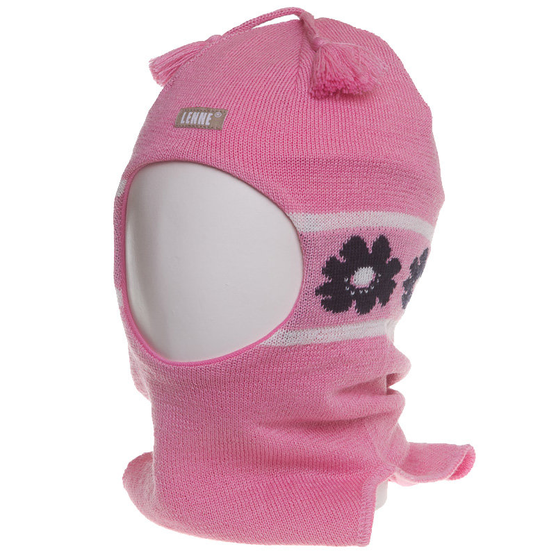 Тепла в'язана шапка "шолом" для дівчаток від 3 до 4 років. Добре захищає від вітру вушка та шию дитини. Склад: 50% вовна, 50% акрил. Є підкладка з 100% бавовни. Розмір - 50.