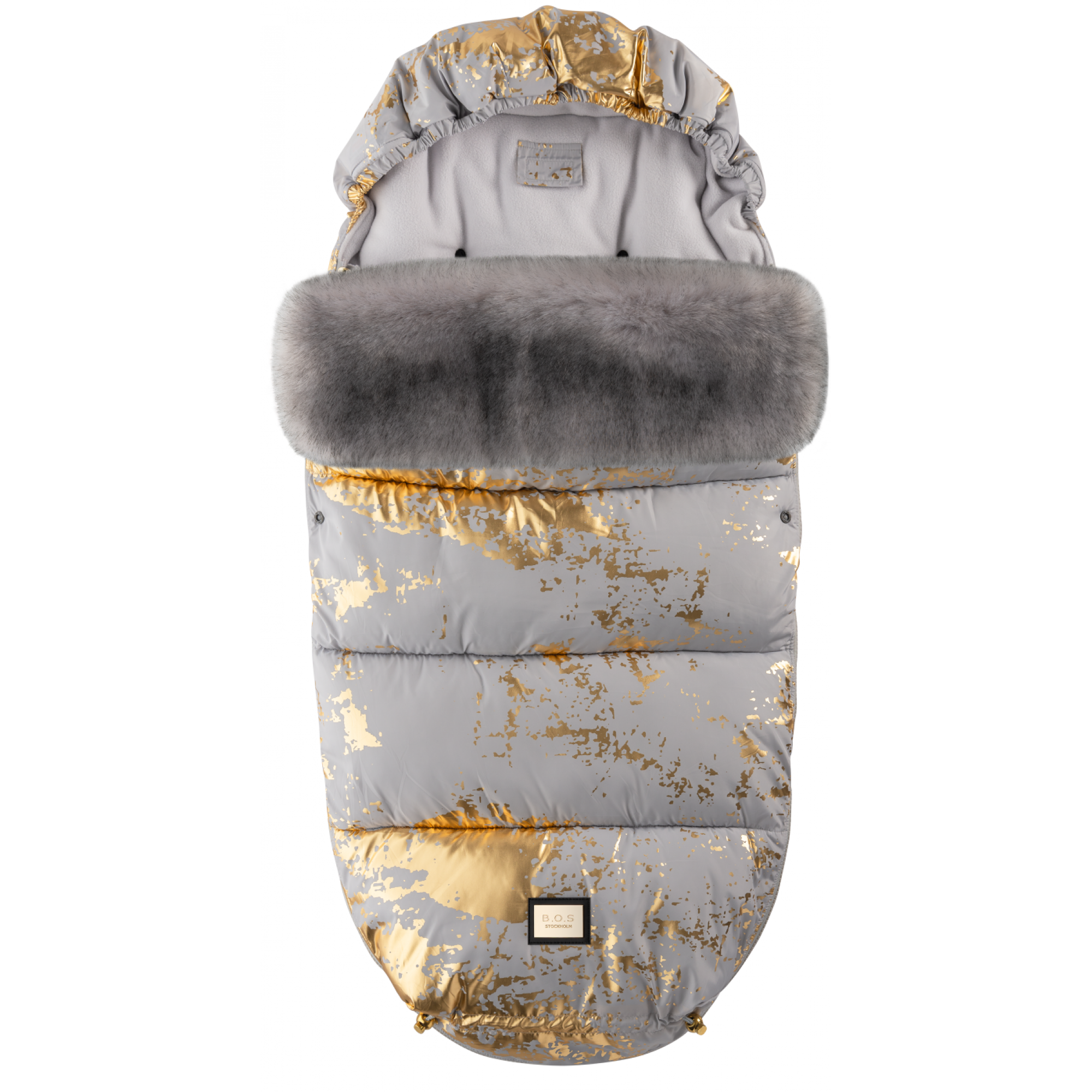 Чохол підійде під будь-яку коляску, в колиску чи прогулянку. У комплекті йде знімна подушечка для правильного позиціонування голови, капюшон, знімне штучне хутро.