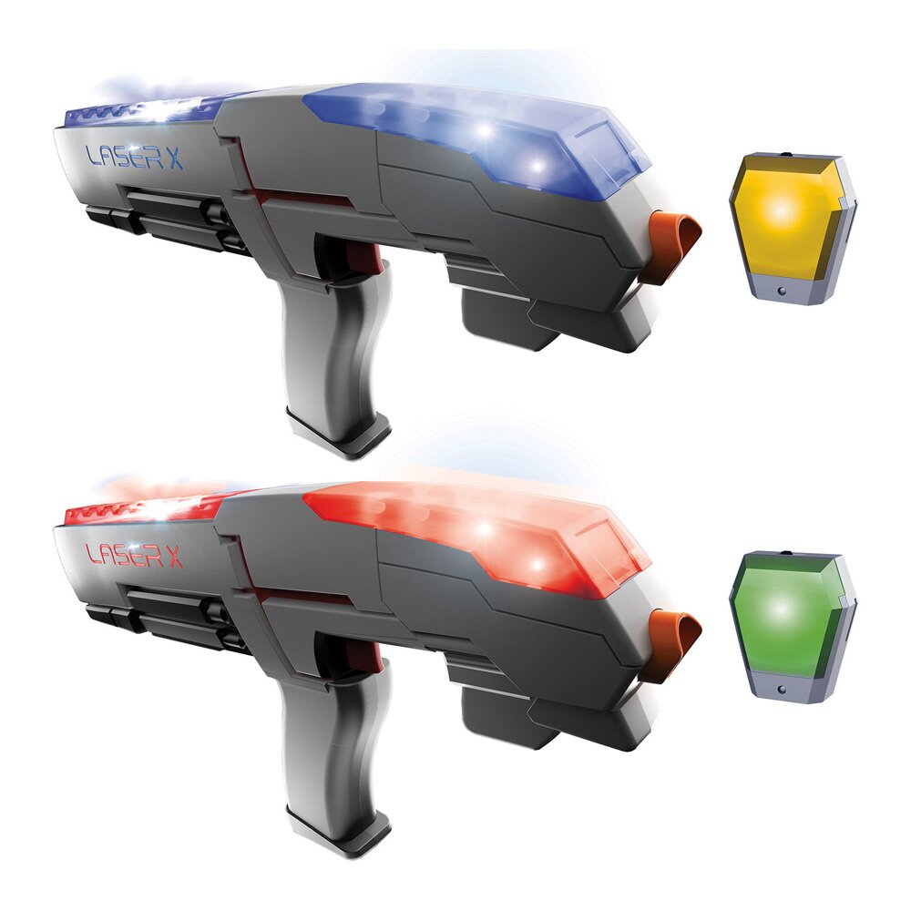 У наборі 2 бластери, що використовують інфрачервоний лазер, невидимий для ока, тому буде легко ховатися або ж атакувати. Два приймачі-мішені діють на максимальній відстані 60 метрів. Аби перемогти, треба влучити у суперника 8 разів — тоді індикатор на моделі змінює колір із зеленого на червоний. Через хвилину без влучань у гравця відновлюється одне життя. Пістолет може стріляти через вікна, а ще лазер рекошетить від поверхонь. Для живлення потрібно окремо придбати 6 батарейок типу ААА.