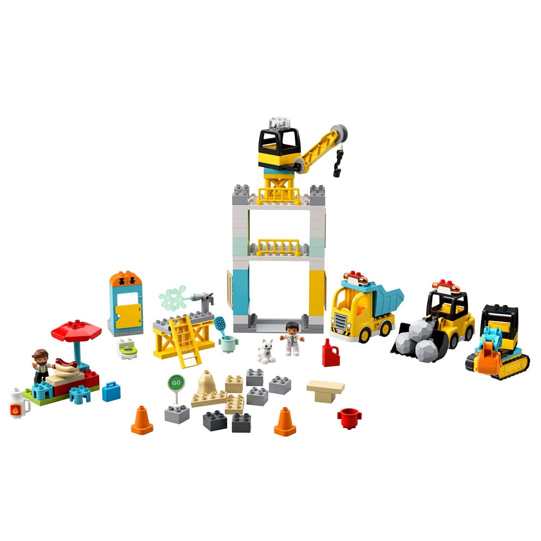 Знайомте малюка з професіями та спеціальним транспортом за допомогою конструктора LEGO® DUPLO®! Ігровий набір розроблений для дітей старше 2-х років. Включає 123 невеликих барвистих блоки, з яких можна зібрати будмайданчик, кран, екскаватор, вантажівку, великий і маленький бульдозер. Іграшка продумана до дрібниць. Деякі модулі - зі звуком і світлом - працюють від батарейок. У комплекті є душова кабіна, закусочна з хот-догами, дорожні знаки, будматеріали, інструменти. Розігрувати сюжет можна за допомогою фігурок: двох робітників, маляра, кранівника, продавця. Конструктор для самих маленьких розвиває дрібну моторику, формує початкове вміння будувати. В процесі гри малюк вчиться взаємодіяти з навколишнім світом, створювати уявні ситуації. Невеликими за розміром фігурками зручно грати: вони вміщуються у дитячу ручку. А шипове з'єднання спрощує збір конструкції. Артикул 124482.