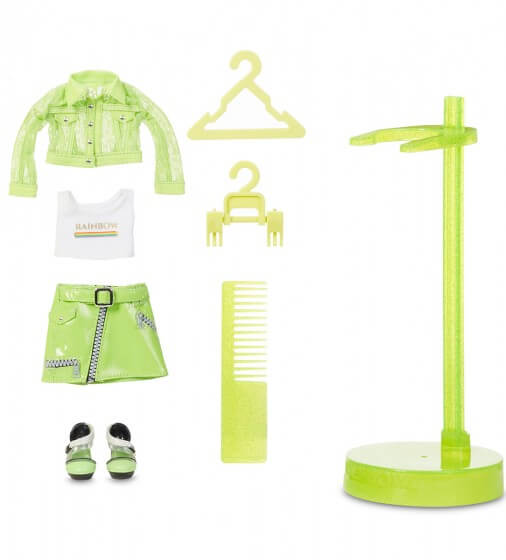 До набору входять: лялька, жакет, 2 стандартних топи, пояс, 2 спідниці, шкарпеточки, 2 пари взуття, гребінець, 2 вішаки, підставка. Рекомендовано для дітей віком від 3 років.