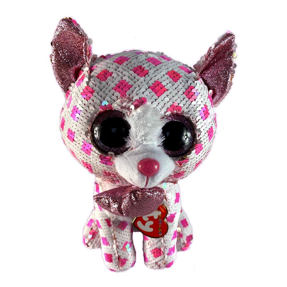 М'яка іграшка TY Flippables Кошеня Cupid виготовлена з плюшу, поліефірного наповнювача та реверсивних пайеток.Головний їх фокус полягає в тому, що достатньо провести по них рукою, перевернувши блискучі лусочки, і забарвлення та малюнок на шерсті котеняти змінюється.Чарівний і розслабляючий ритуал, який дуже подобається малюкам. Під час гри розвивається уява, дрібна моторика і емоційний інтелект. Усі матеріали є сертифікованими та гіпоалергенними. Висота: 25 см. Рекомендовано для дітей від 3-х років.