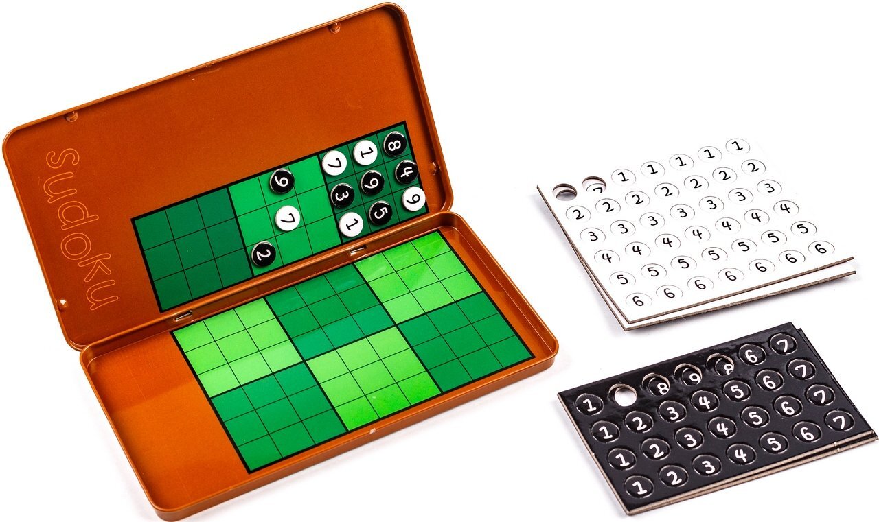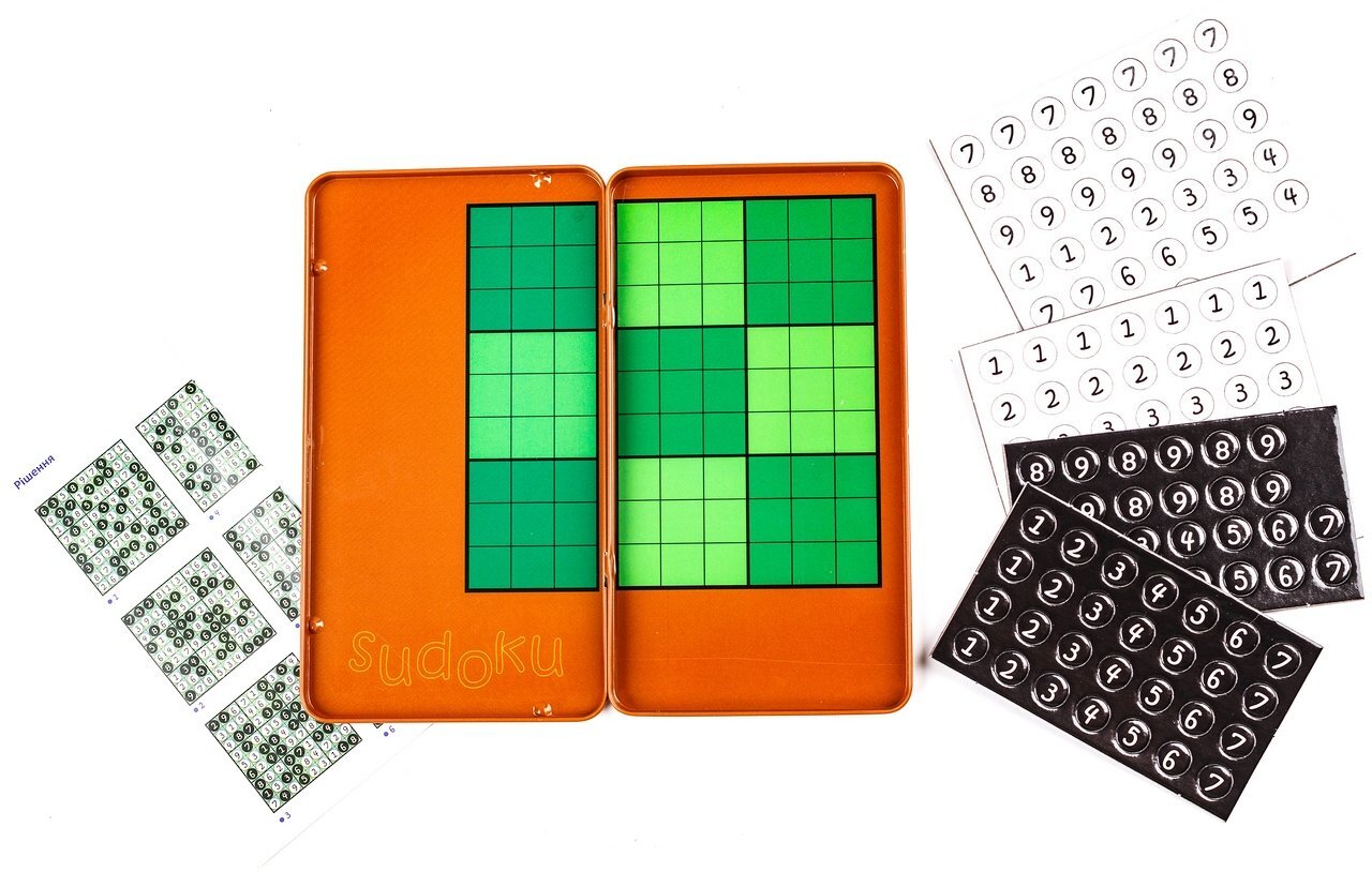 Класична гра «Судоку» представлена в міні форматі зручному для поїздок. Набір включає 27 ігор судоку. У набір входять: 135 магнітів, поле для гри, 27 варіантів гри. Розмір гри: 10,3х18,5х1 см.