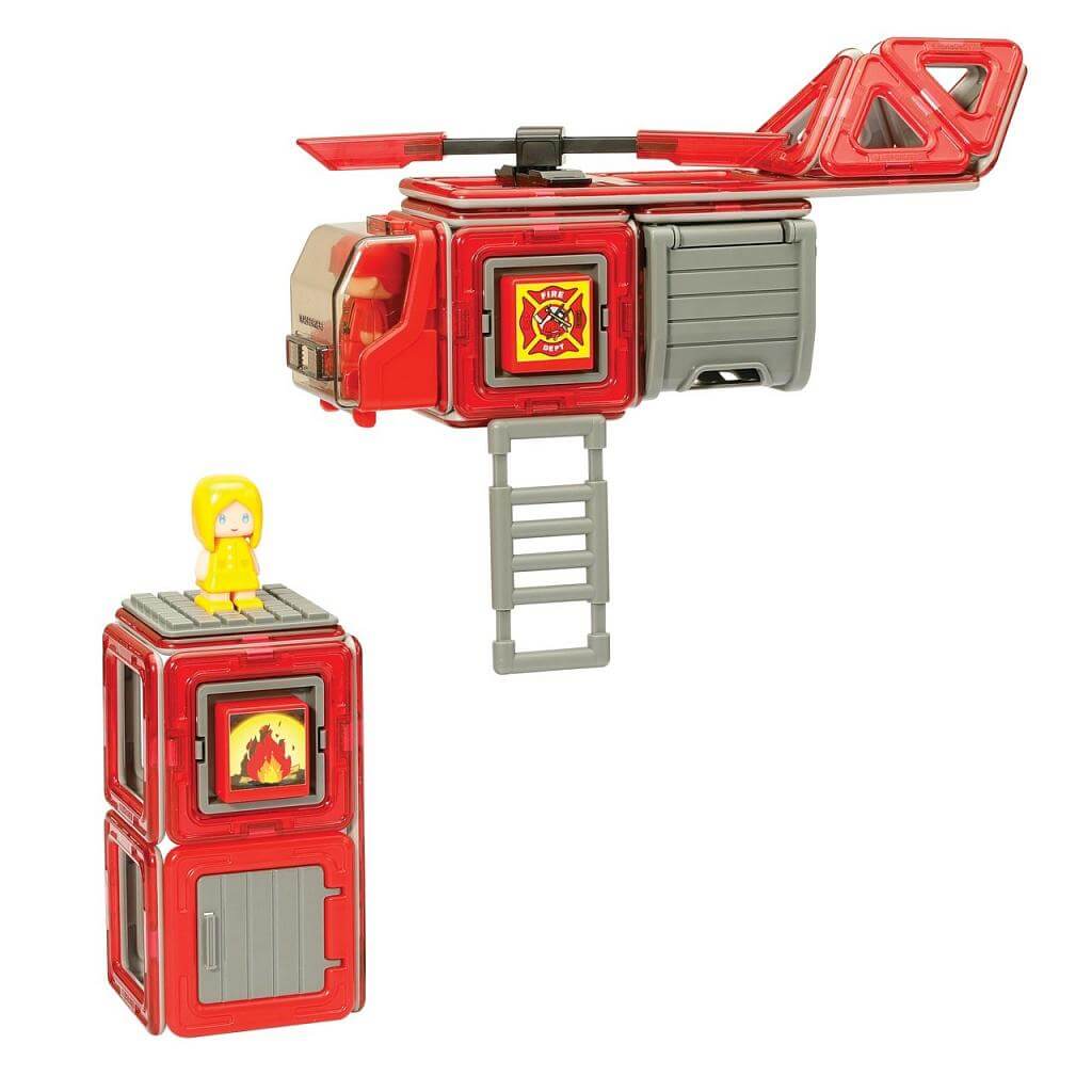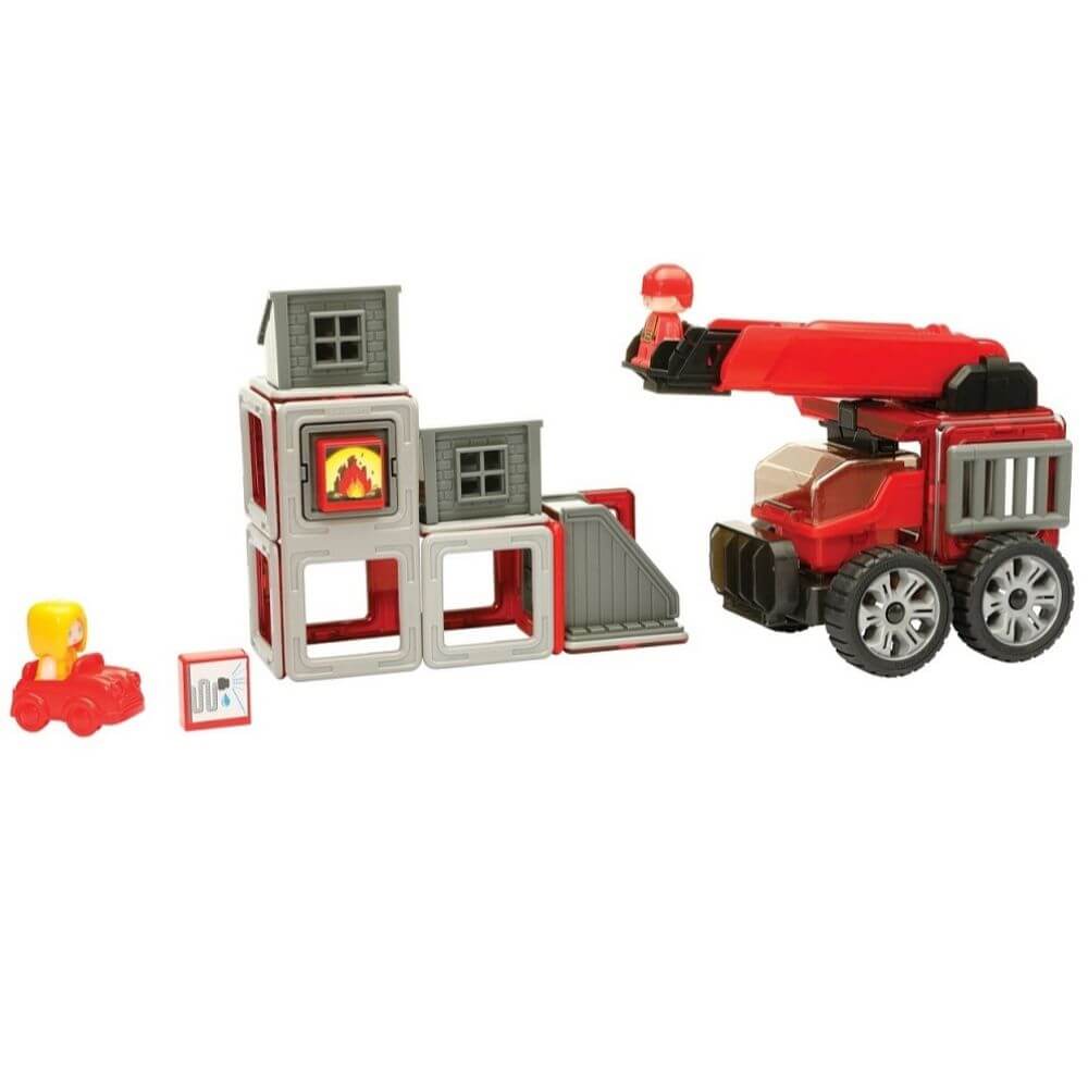 Переходьте на новий рівень конструювання - будуйте пожежну машину Magformers, та вступайте до лав рятувальників. До набору входять 50 елементів, фігурки пожежника та дівчинки. Всередині кожної деталі є рухомі магніти, завдяки яким вони з'єднуються у конструкцію. З геометричних фігур - трикутників та квадратів - та аксесуарів можна скласти палаючий будинок, пожежну вантажівку чи гвинтокрил. Магнітний конструктор виготовлений з яскравих, якісних та безпечних матеріалів. Всі деталі в наборі сумісні з деталями з інших наборів "Магформерс". У комплекті є покрокова інструкція. Конструктор з магнітами розвиває у дитини просторове та логічне мислення, дрібну моторику, фантазію, сприйняття кольору та форм. Рекомендовано малюкам старше 3-х років.