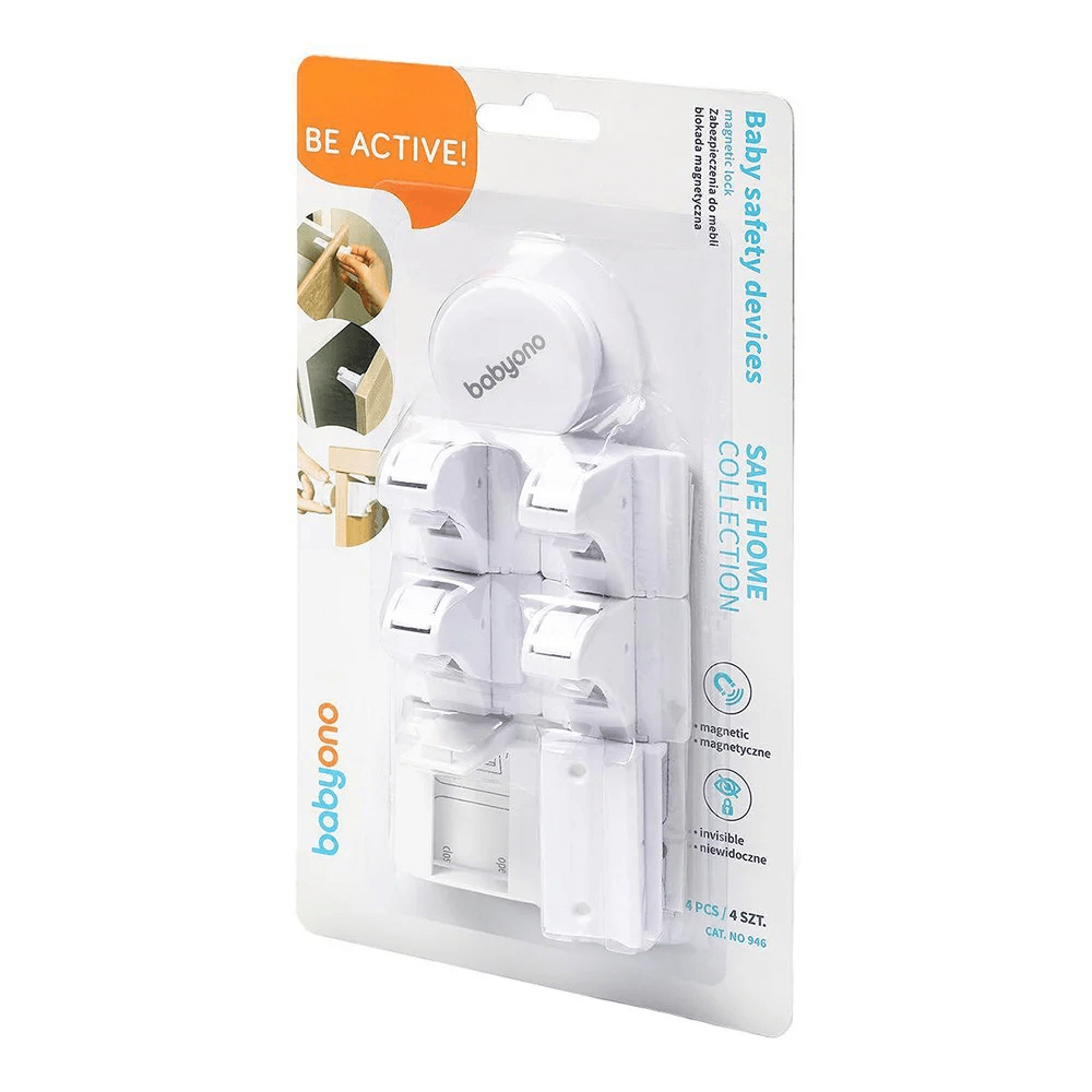 Магнітний замок BabyOno - протектор, що встановлюється всередині ящика або шафи. Механізм ефективно блокує доступ до вмісту і розблоковується спеціальним ключем. Установка захисту не потребує інструментів. Непомітний замок не привертає увагу малюка. Підходить для шаф, ящиків, вітрин - будь-яких меблів з товщиною стінок до 3 см. Міцний скотч не пошкоджує поверхню і може бути прикріплений до різних матеріалів, таких як пластик, дерево, скло або метал. Коли замок більше не потрібен, його можна легко зняти. У комплекті: замок - 4 шт., магнітний ключ, магнітна клавіатура, інструкція з монтажу.