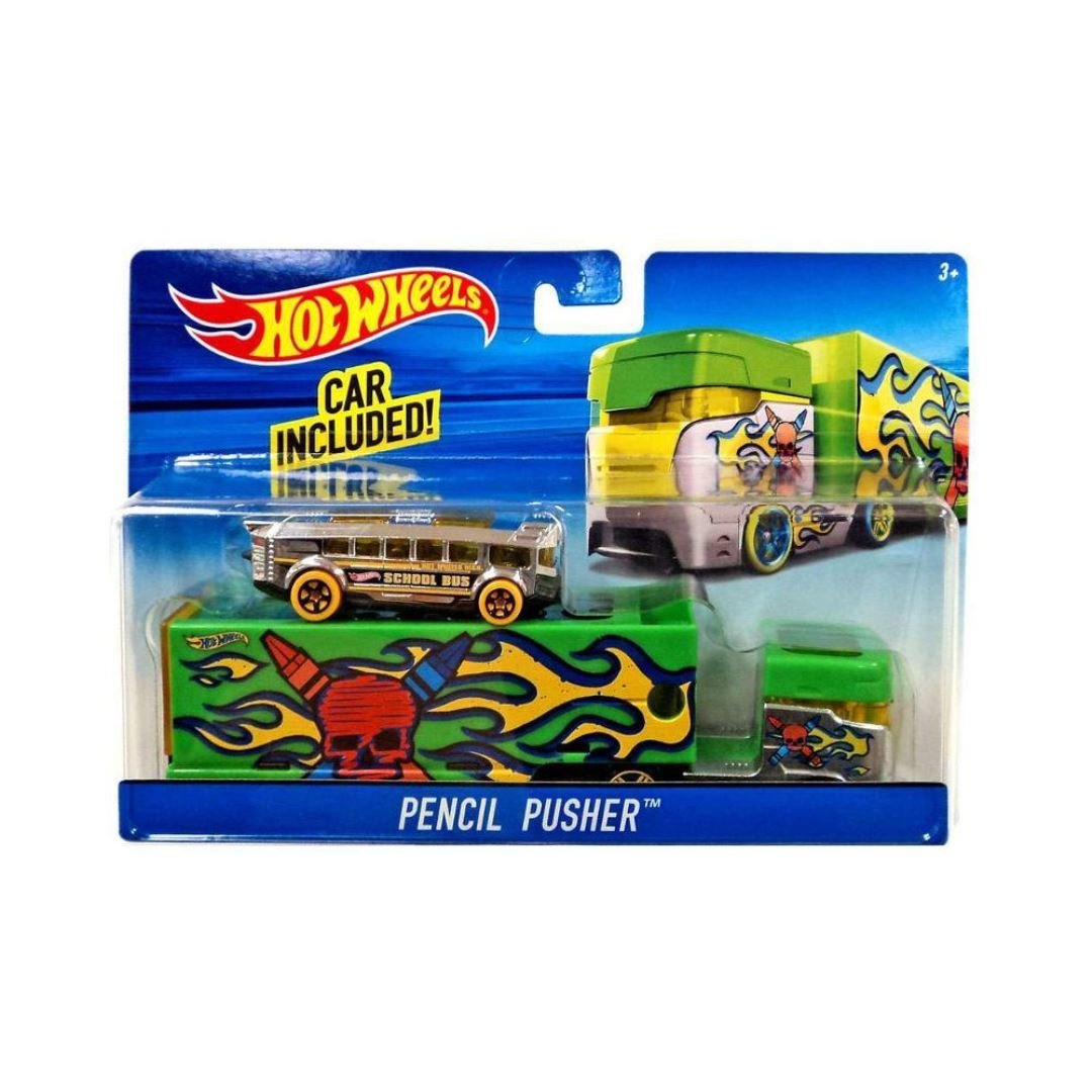Вантажівка-трейлер Hot Wheels не залишить жодного хлопчиська байдужим! Машинки далекобійника вражають своєю деталізацією і реалістичністю. Вони зроблені з металу, і витримають саму нещадну гонку по будь-якій трасі. Кожна з цих потужних машин має окремі рухомі блоки та надшвидкі колеса. Кабіна вантажівки від’єднується. Інтересу грі додає можливість міняти причепи. Це дозволяє створити свою унікальну колекцію "Хот Вілс". До комплекту входить одна машинка. Кожен набір продається окремо. Вантажівка не підходить до треків Hot Wheels. Набір рекомендований дітям старше 3-х років.