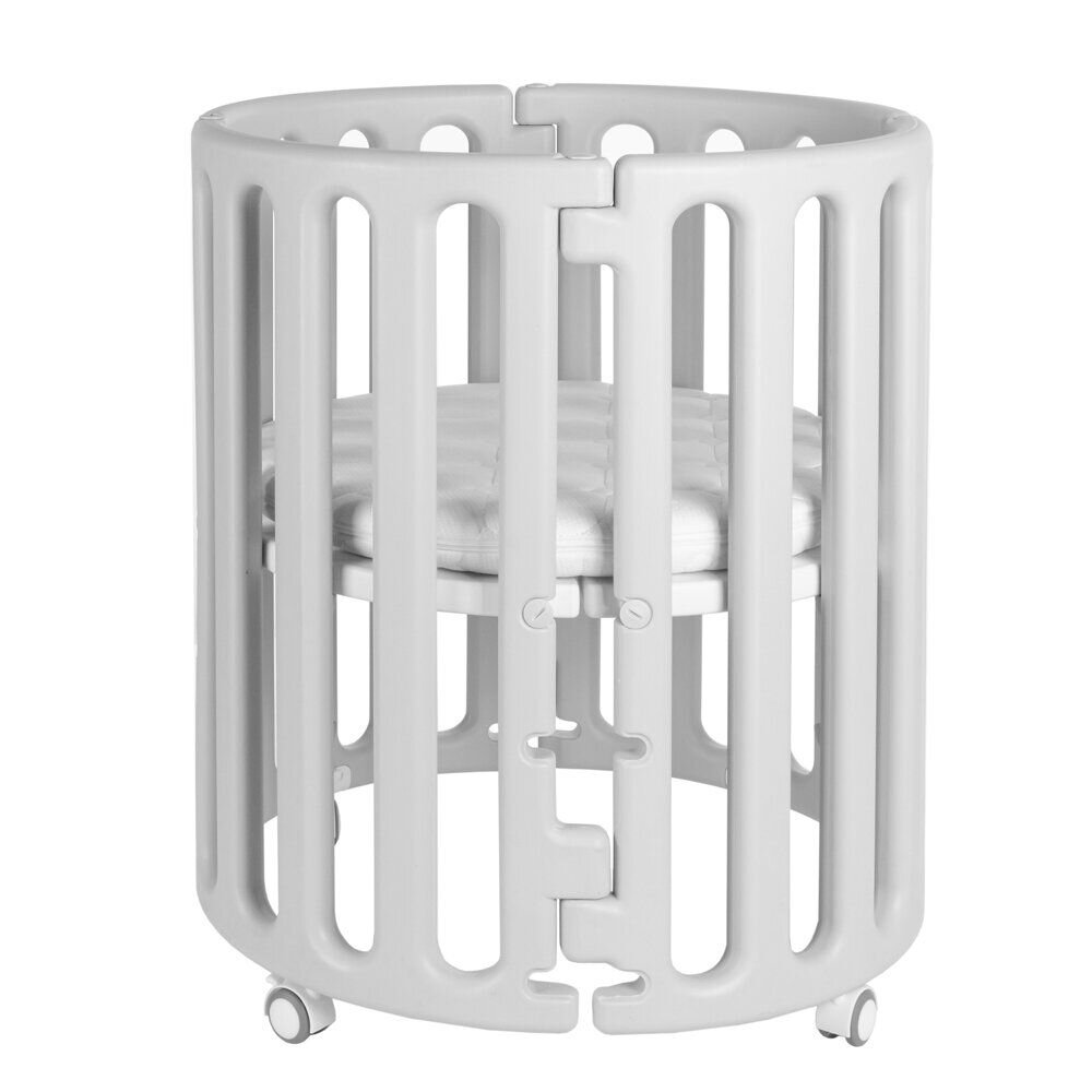 Багатофункціональне ліжечко-трансформер для дітей до 8 років, що є одночасно люлькою, столиком зі стільцем, манежем, сповивальним столиком. Це справжнє втілення вишуканого смаку і функціональності. Овальна форма, приємний колір і максимально повна комплектація поєднуються ідеально, надаючи новонародженому малюку потрібний рівень комфорту. Дно виставляється на 3-х рівнях. Є можливість встановлювати коліщата. У комплектації - матрац (64х64х5 см).