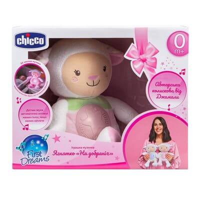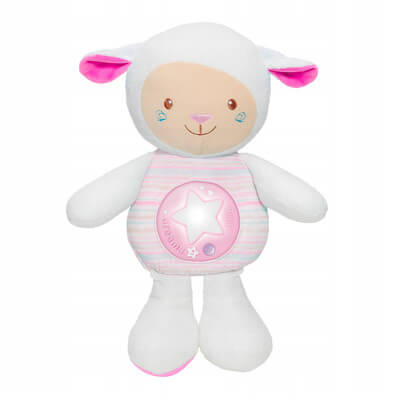 Зробіть затишок у дитячій кімнаті з музичним нічником "На добраніч" Chicco. Світильник має вигляд ягня, виготовлений з безпечних матеріалів - текстилю та пластику. У іграшки-нічника приємна на дотик біла шерсть, рожеві лапки, вушка, животик.