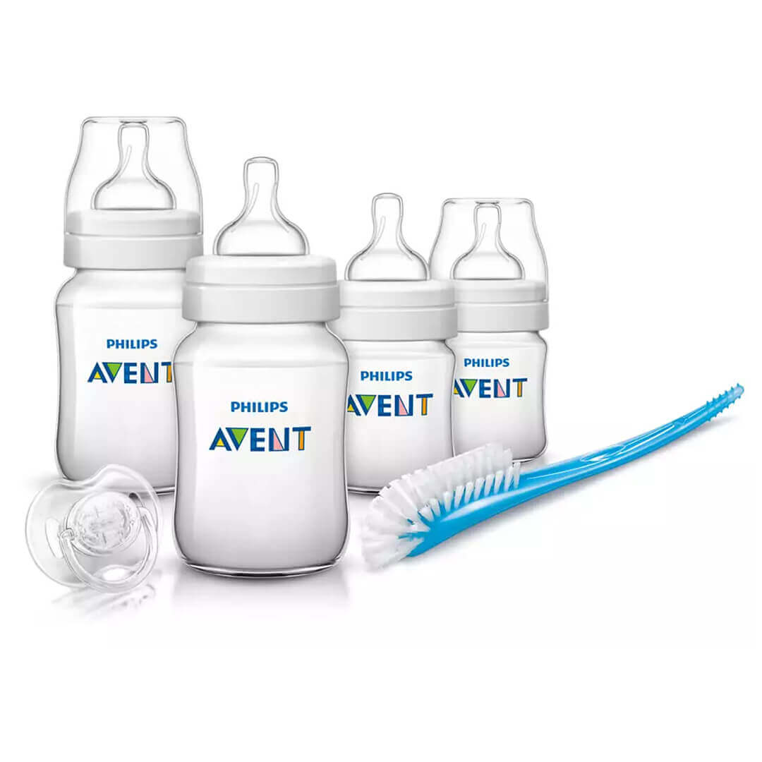 Набір для годування новонароджених серії Classic+ включає 2 пляшечки по 125 мл, 2 пляшечки по 260 мл, пустушку та щітку. Виготовлений з поліпропілену, що не містить бісфенолу-А. У пляшечок ергономічна форма, що дозволяє тримати їх у будь-якому положенні. Унікальний клапан на силіконовій сосці вигинається відповідно до ритму годування дитини. Молоко тектиме лише зі швидкістю, вибраною Вашою дитиною, що зменшує переїдання, появу коліків, газиків та зригувань. Щіточка для пляшечок Philips Avent має особливу вигнуту форму і литу ручку, тому з її допомогою можна чистити пляшечки і соски будь-яких типів, а також інші приналежності для годування. Щільні щетинки дбайливо очищають поверхню, не дряпаючи її. Зручно мити в посудомийній машині.