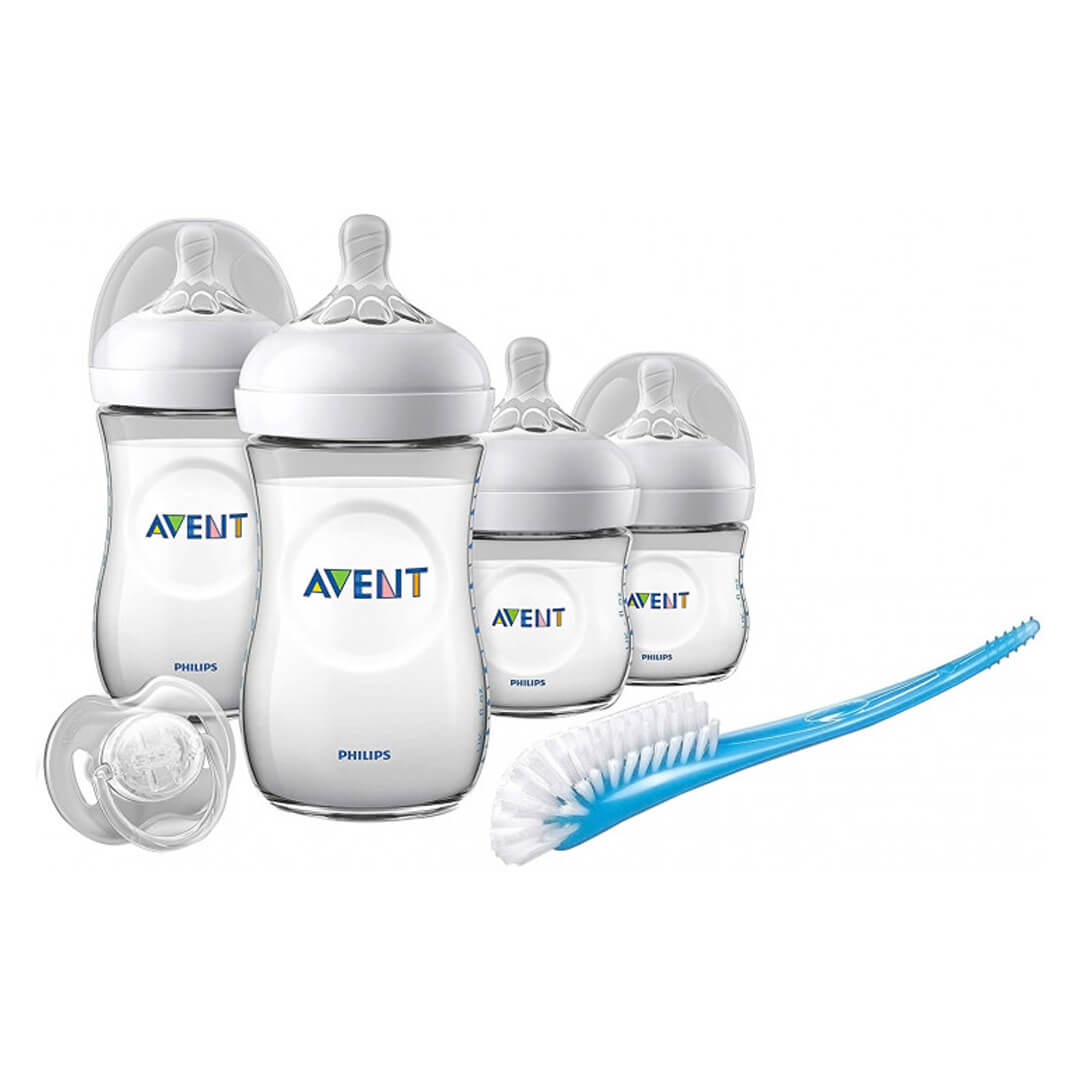 Набір для годування новонароджених серії Natural включає 2 пляшечки по 125 мл, 2 пляшечки по 260 мл, пустушку та щітку. Виготовлений з поліпропілену, що не містить бісфенолу-А. У пляшечок ергономічна форма, що дозволяє тримати їх у будь-якому положенні. Зручно навіть для маленьких ручок малюка. Пляшечка має антиколіковий клапан, який не дозволяє повітрю потрапляти в животик малюка, запобігає появі кольок і дискомфорту.