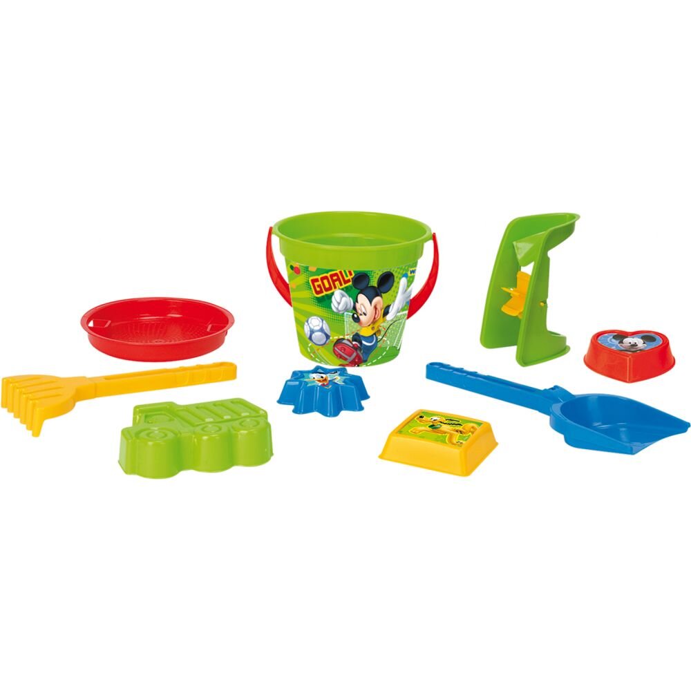 Цей набір для піску з діснеївськими героями підійде для дітей у віці 2-3-х років. Він призначений для ігор на природі, в пісочниці, і тут є все необхідне, щоб малюк міг весело провести час на свіжому повітрі. А улюблені персонажі на предметах набору будуть радувати око і дарувати веселий настрій. У комплектацію цього набору включені: відерце об'ємом 3,4 л, 4 формочки для створення фігурок з піску (вантажівка, кальмар, зірка і прямокутник), млин, лопатка, грабельки. Весь набір упакований у сітку. Всі елементи набору виготовлені з високоякісного пластику, не мають гострих деталей і безпечні для дітей.