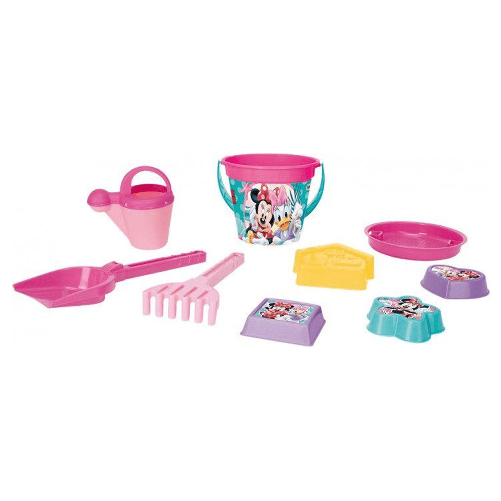 Мінні, подружка Міккі Мауса, тепер прийматиме участь у грі в пісочниці, адже її зображення намальовано на відерці. У цьому наборі для піску є 9 предметів. Цей набір з діснеївськими героями підійде для дівчаток у віці від 1 до 3-х років. А улюблені персонажі на предметах набору будуть радувати око і дарувати веселий настрій. У комплектацію входять: відерце об'ємом 3,4 л, 4 формочки для створення фігурок з піску (морська зірка, квіточка, сердечко і будиночок), лійка, якою буде цікаво грати з водою, лопатка, грабельки. Весь набір упакований у сітку, в яку його зручно збирати і переносити. Всі елементи набору виготовлені з високоякісного пластику, не мають гострих деталей і безпечні для дітей.