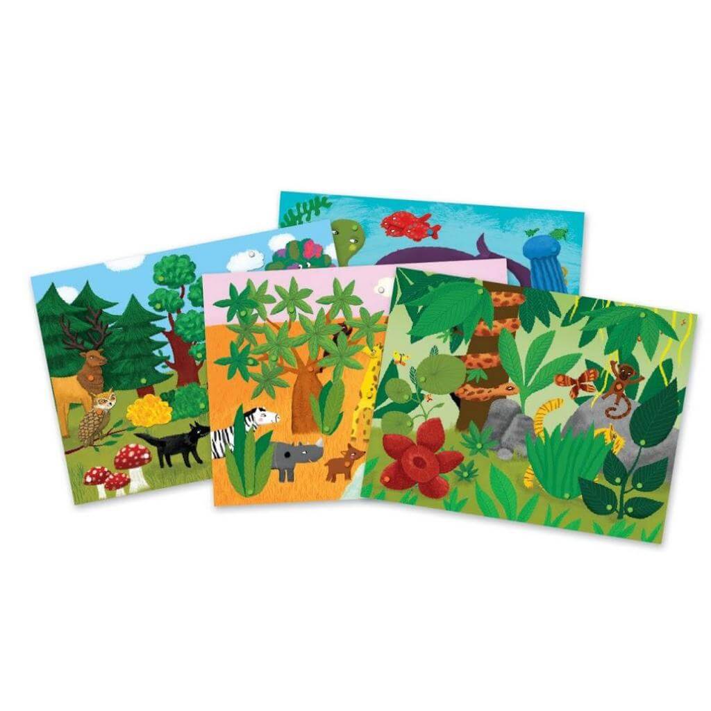 Пізнавайте світ з малюком весело та креативно! І в цьому вам допоможе французька компанія "Джеко". Спеціально для дошкільнят вона створила комплект "Рухливі тварини", що є одночасно і творчим, і навчальним, і ігровим. Дитині пропонується вгадати за зображенням середовища, яка тварина тут мешкає, а потім скласти картину з рухомими елементами. У наборі: 4 фона, 99 деталей тварин, 86 кріплень, ілюстрована інструкція. Гра розвиватиме в дитині дрібну моторику, логічне мислення, художній смак, кругозір, акуратність, уважність, посидючість.