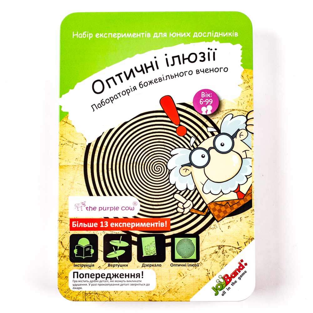 Мозок людини інтерпретує інформацію, яку бачать очі. А чи побачене є реальністю? Набір "Лабораторія божевільного вченого" познайомить Вас з дивовижними оптичними ілюзіями. У металічній коробці розміром 50 х 18 х 42 см Ви знайдете вертушки, дзеркало та інструкцію, як поставити 13 експериментів. Набір рекомендований дітям старше 6 років, дає початкові уявлення про фізику.