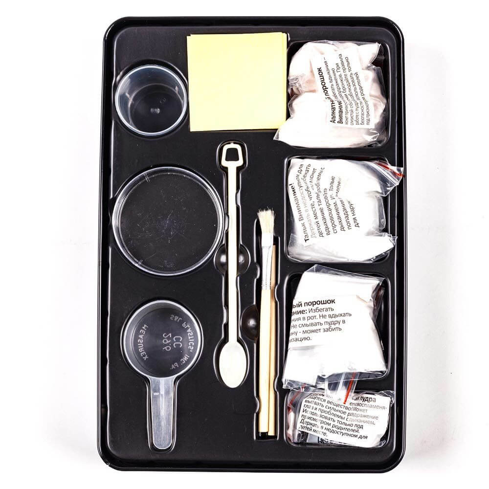 Мрієте стати відомим детективом? Час починати! З набором "Лабораторія божевільного вченого" Ви навчитесь знімати відбитки пальців будь-де. Для захоплюючої дактилоскопії в коробочці є все необхідне: інструменти, ємності, штамп-подушка, альгекатний та SAP порошок. З комплектом юного детектива йде детальна інструкція російською мовою. Гра рекомендована дітям старше 6-ти років. Розмір коробки - 50 х 18 х 42 см.