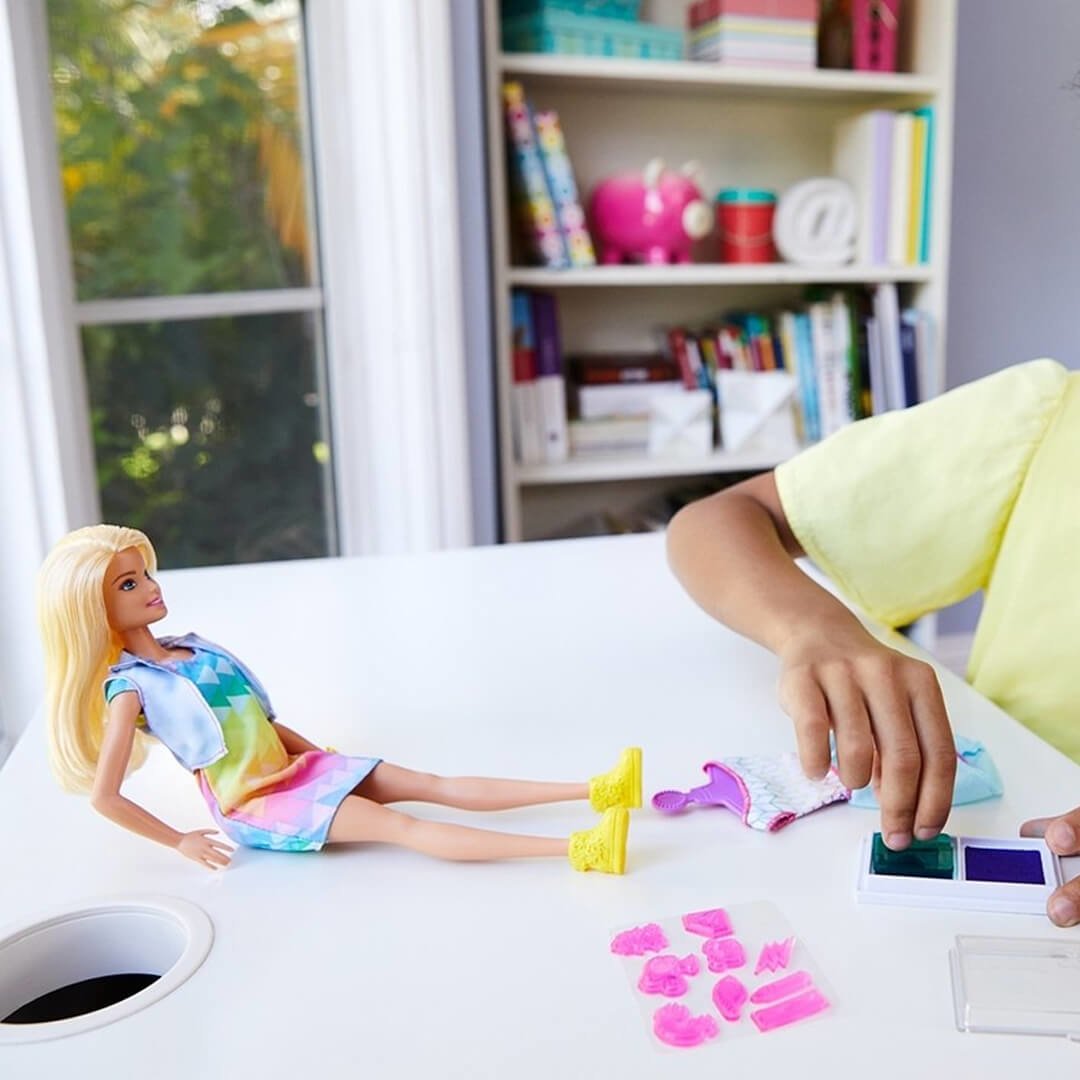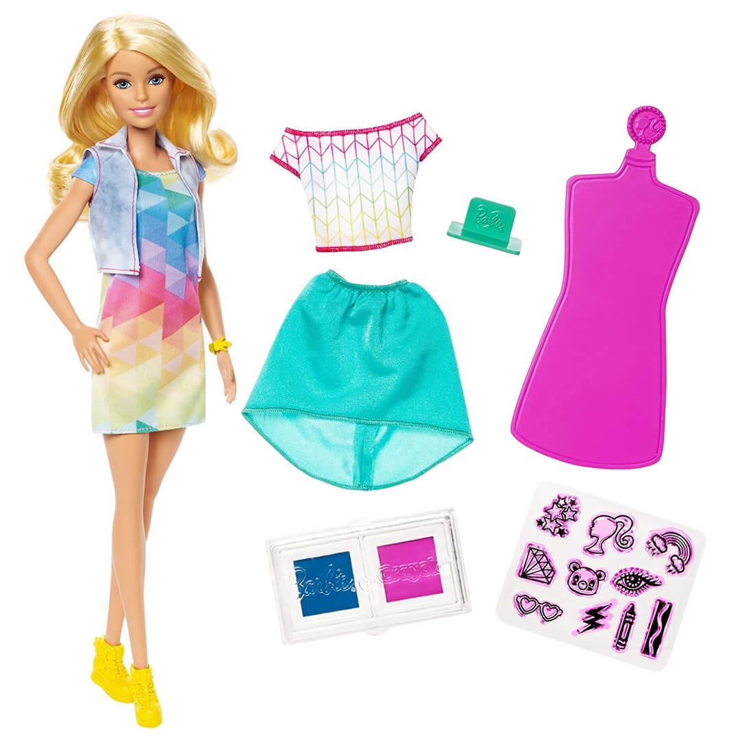 Створюйте дизайнерський одяг з серією Crayola Barbie! Ігровий набір створено для дітей від 5-ти років. До комплекту входить лялька, манекен, предмети одягу для декорування, 10 наліпок, штемпель, друкарська фарба двох кольорів. Висота Барбі - 29 см. Лялька виготовлена з міцного безпечного пластику. Має струнку фігуру, біляве волосся та гарне личко з блакитними очима. У ляльки рухливі кінцівки, повертається голова. Дівчина одягнена у яскраву сукню з геометричним принтом, джинсовий жилет, жовті кросівки. Щоб переодягти Барбі у нове дизайнерське вбрання, слід зробити декілька простих кроків. Натягніть на манекен блузку чи спідницю з набору. На штемпель помістіть наліпку і прикладіть його до подушки з фарбою. Далі проставте штамп на одязі. Все - дизайнерський витвір готовий! Коли зображення надоїсть, його можна позбутися звичайним пранням. Гра з ляльками Barbie розвиває фантазію та естетичний смак. Вчить дитину піклуватися, дружити та спілкуватися. Артикул 794561.