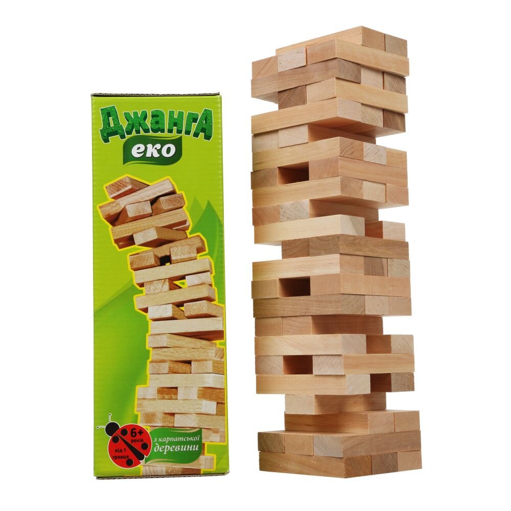 Суть гри полягає у вийманні блоків з середини вежі нагору. Треба бути обережним, бо вежа може впасти. У кого впала вежа — той програв. Комплектація: 54 дерев’яні блоки.
