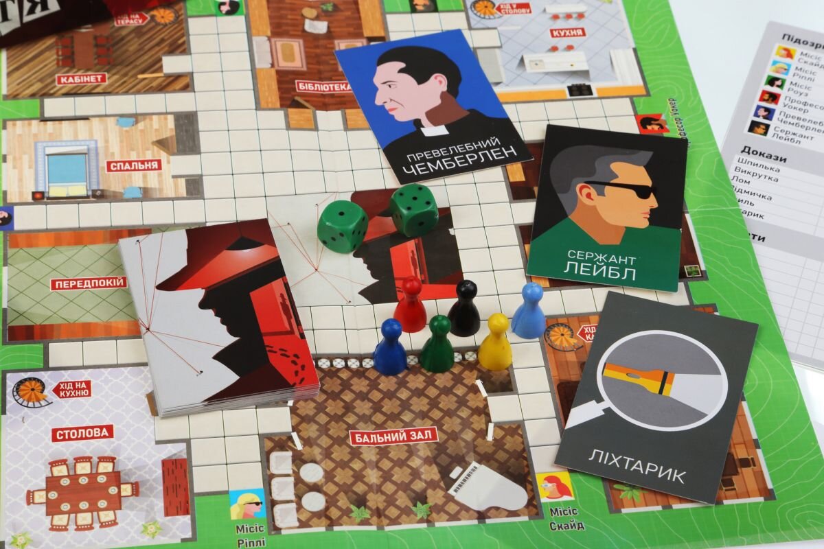 Детективна настільна гра. У цій грі за допомогою дедукції потрібно з’ясувати відповіді на три питання: хто, де і за допомогою чого викрав діамант містера Грега. Використовують шість видів знарядь, і, відповідно, є шість підозрюваних. Поле настільної гри складається з дев’яти кімнат та ігрових клітин для здійснення ходів. Число очок на ігрових кубиках показує кількість кроків.