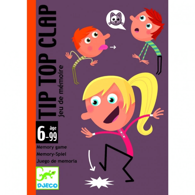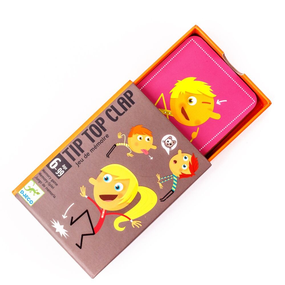 Весела гра "Тіп Топ Хлоп" сподобається всім малюкам. Правила гри дуже прості, в них розбереться навіть самий маленький учасник. Гравці по черзі перевертають карти і зображують дію або звук, намальовані на ній. Усі наступні учасники повторюють побачене, а також додають свою дію. Ланцюжок триває до тих пір, поки один з гравців не помилиться в послідовності. Він залишає собі карту і починає новий раунд.