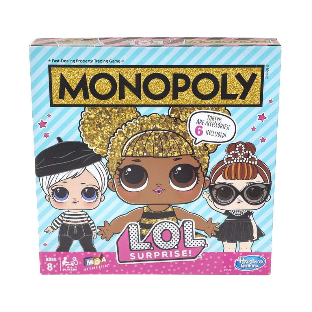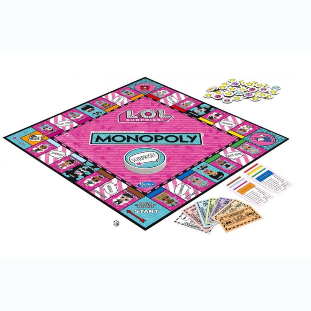 Відома бізнес-гра “Монополія” має безліч варіантів. Один з них - LOL Surprise! від Hasbro на англійській мові. Він сподобається дівчаткам, що обожнюють сюрпризи з лялечками та водночас готові зіграти з друзями чи батьками в настільну гру. Грати можуть від 2 до 4 гравців, які купують, продають чи обмінюють ляльок. Основна мета - зібрати рідкісні. Сюрприз очікує гравця, коли він розгортає жетони. Перемагає той учасник, що зібрав найкрутішу колекцію ляльок ЛОЛ. До комплекту входять: поле для гри, 6 жетонів, 16 карт ляльок, 4 карти домашніх тваринок, 18 карт сюрпризів, 49 значків ляльки (37 зірок та 12 емодзі), кубик, пакет з грошима, аркуш з правила гри англійською мовою. Гра рекомендована дітям від 8 років. Розвиває увагу та логіку. Артикул 800899.