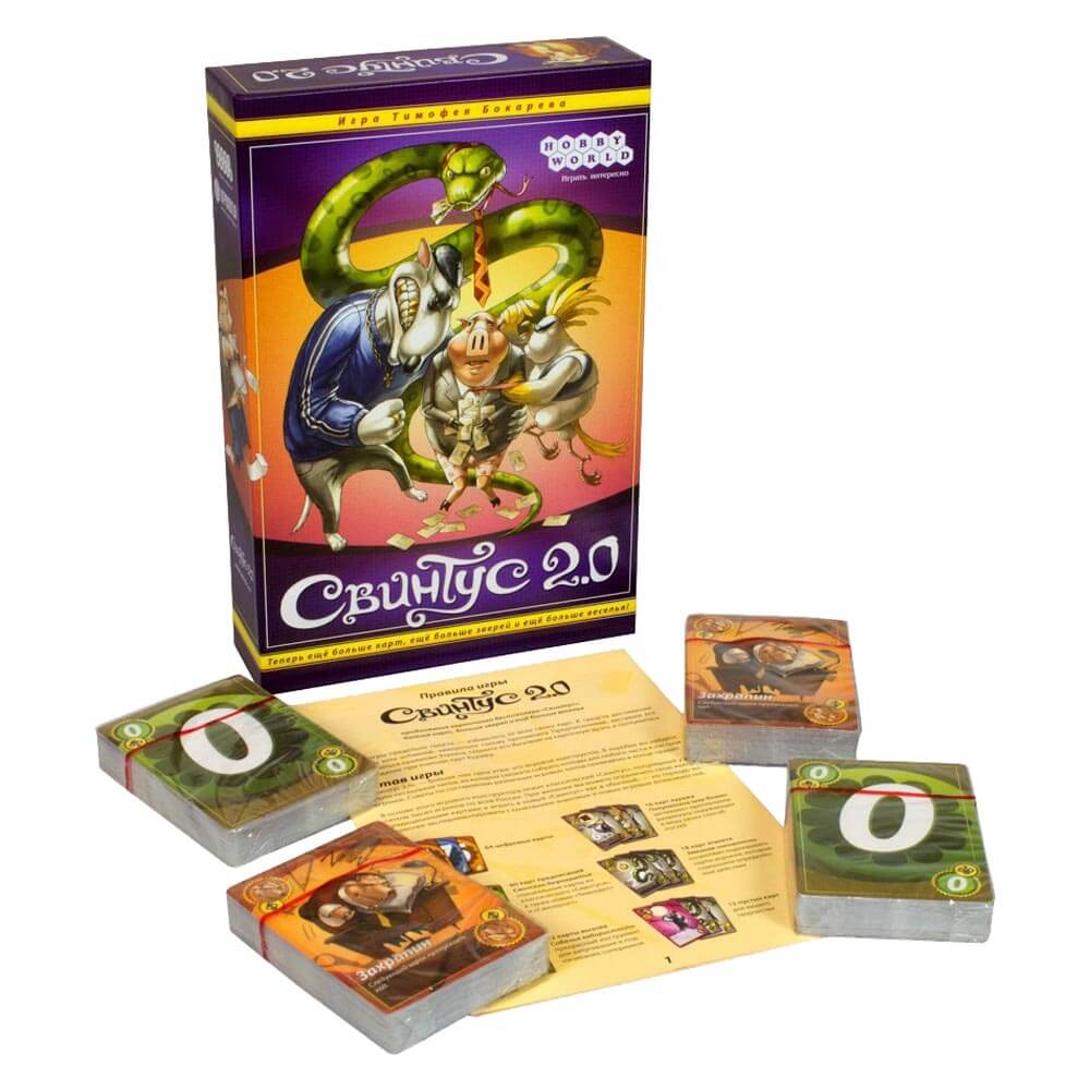 "Свинтус" - друге видання популярної карткової гри від Hobby World. Розрахована на гравців віком від 5 років, кількістю 2-10 чоловік. Завдяки динамічності та простоті правил ця гра вже полюбилася багатьом дітям. Завдання гравців - заморочити голову супротивнику та позбутися від карт на руках. У комплекті: правила, 180 карт, 12 порожніх карт для творчості. В оновленому наборі є нові карти - Приписи (Свинська бюрократія). Гра розвиває увагу, кмітливість, азарт.