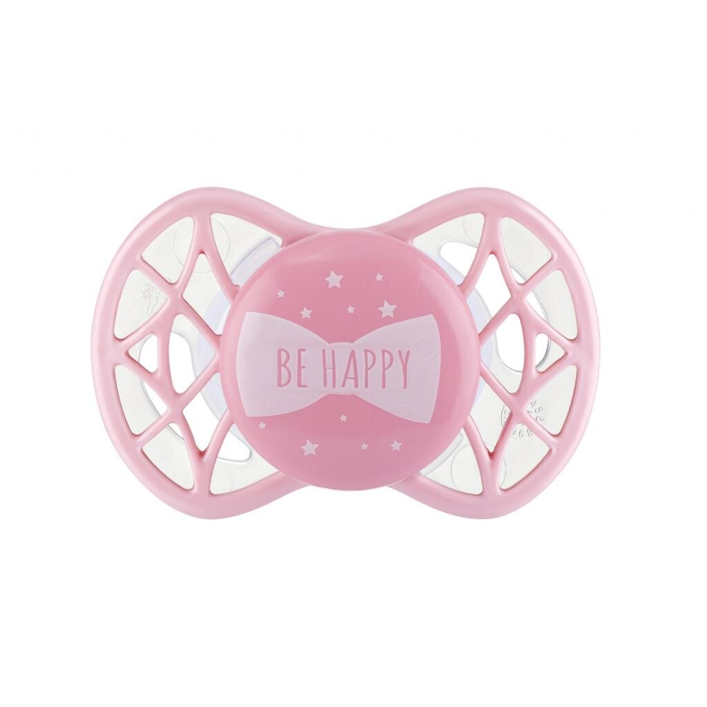 Ортодонтична пипка для дітей від народження. Світиться у темряві, тому підходить для використання у нічний час. Пластина соски на 55% складається з повітря. Технологія Air55 Cool забезпечує повну аерацію області навколо рота, попереджує скупчення слини, що може подразнювати шкіру. Є захисний ковпачок для підтримки соски в чистоті. Пустушку можна стерилізувати в мікрохвильовій печі простим додаванням води.