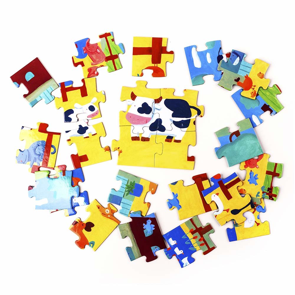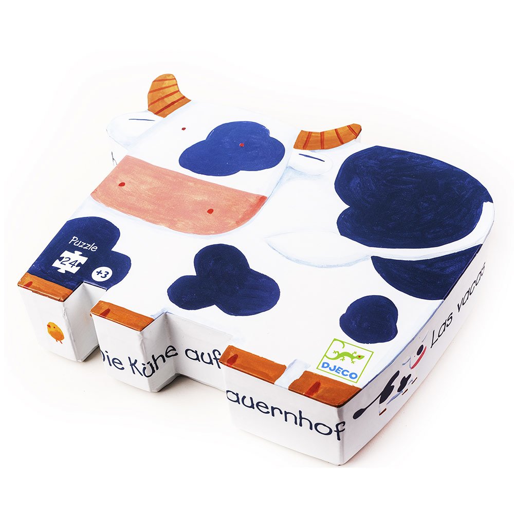 Пазл "Корівка Му" від DJECO створений для дітей від 3 років. У яскравій упаковці у формі корівки містяться 24 деталі для складання картинки. Великі за розміром деталі виготовлені з щільного картону. Матеріал відрізняється високою якістю, безпечний для здоров'я дітей. Дитині зручно буде тримати елементи в руках та складати пазл. Гра сприяє розвитку дрібної моторики у малюка, знайомить з мешканцями ферми. Дитина разом з батьками може придумати цікаву історію про життя тварин.