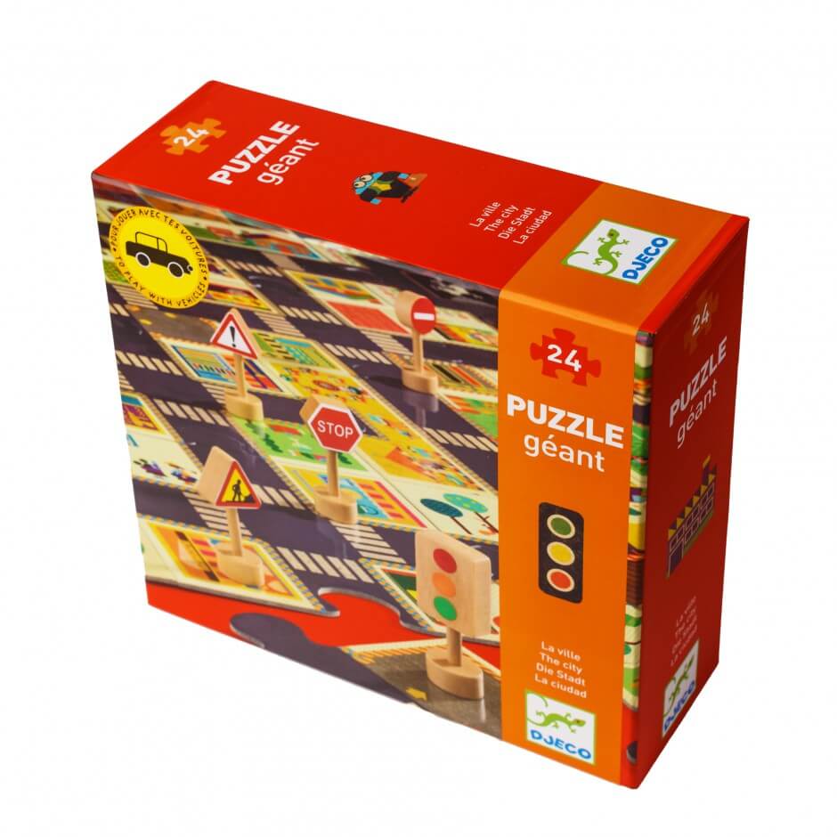 Пазл "Дорога" - це набір-головоломка для дітей віком від 3-х років. Гра розроблена дизайнерами французької компанії DJECO. До складу комплекту входять: 24 елементи, 5 дорожніх знаків, інструкція. Елементи виконані з щільного картону, який не загинається і не ламається. Дорожні знаки виконані з дерева. Кожен елемент покритий яскравими барвистими малюнками. Пазли допоможуть дитині зібрати автомобільні дороги різних розмірів, в різних напрямках. Для цього можна запросити друзів і батьків. Дорослі з раннього дитинства зможуть знайомити дітей з небезпеками на дорогах і розповідати про правила дорожнього руху. Складаючи дорогу, малюк розвиває дрібну моторику, уважність, логічне мислення, уважність і посидючість.