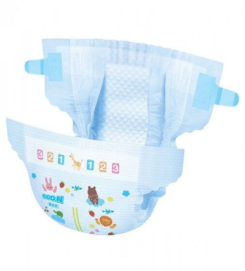 - Нові підгузники GOO.N мають м'яку сітчасту зовнішню поверхню, яка пропускає повітря всередину підгузника і виводиться назовні вологе повітря, що дозволяє зберегати шкіру малюків сухою.
