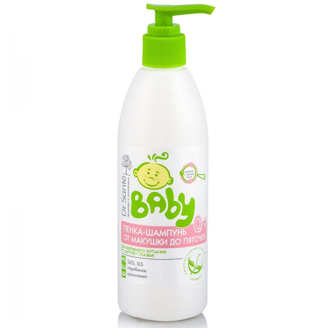 Пінка-шампунь Dr. Sante Baby створена для дбайливого та делікатного очищення волосся й шкіри дітей від народження. Завдяки збалансованій м'якій формулі засіб не порушує фізіологічний гідроліпідний баланс, не подразнює очі. Піна виготовлена на основі рослинного компонента - похідного від яблучного соку. Оливкова олія зберігає природну м'якість і ніжність шкіри. Молочні та пшеничні протеїни зволожують, кондиціонують, забезпечують легке розчісування. Не містить барвників, парабенів, SLES, SLS.