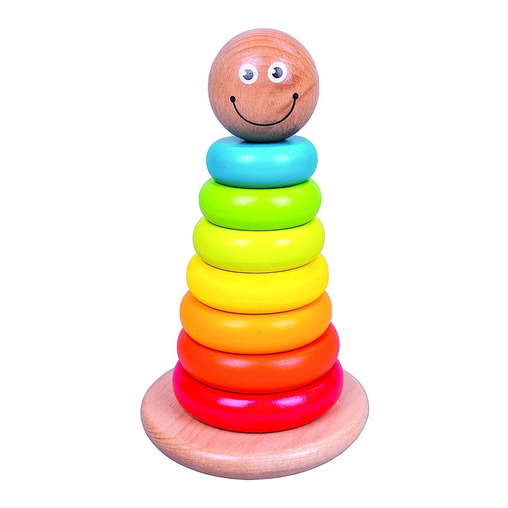 Іграшка виконана з барвистих дерев'яних кілець, вкритих нешкідливими фарбами на водній основі. Всі деталі дуже гладкі та приємні на дотик. Пірамідка захопить дитину корисною грою на довгий час.
