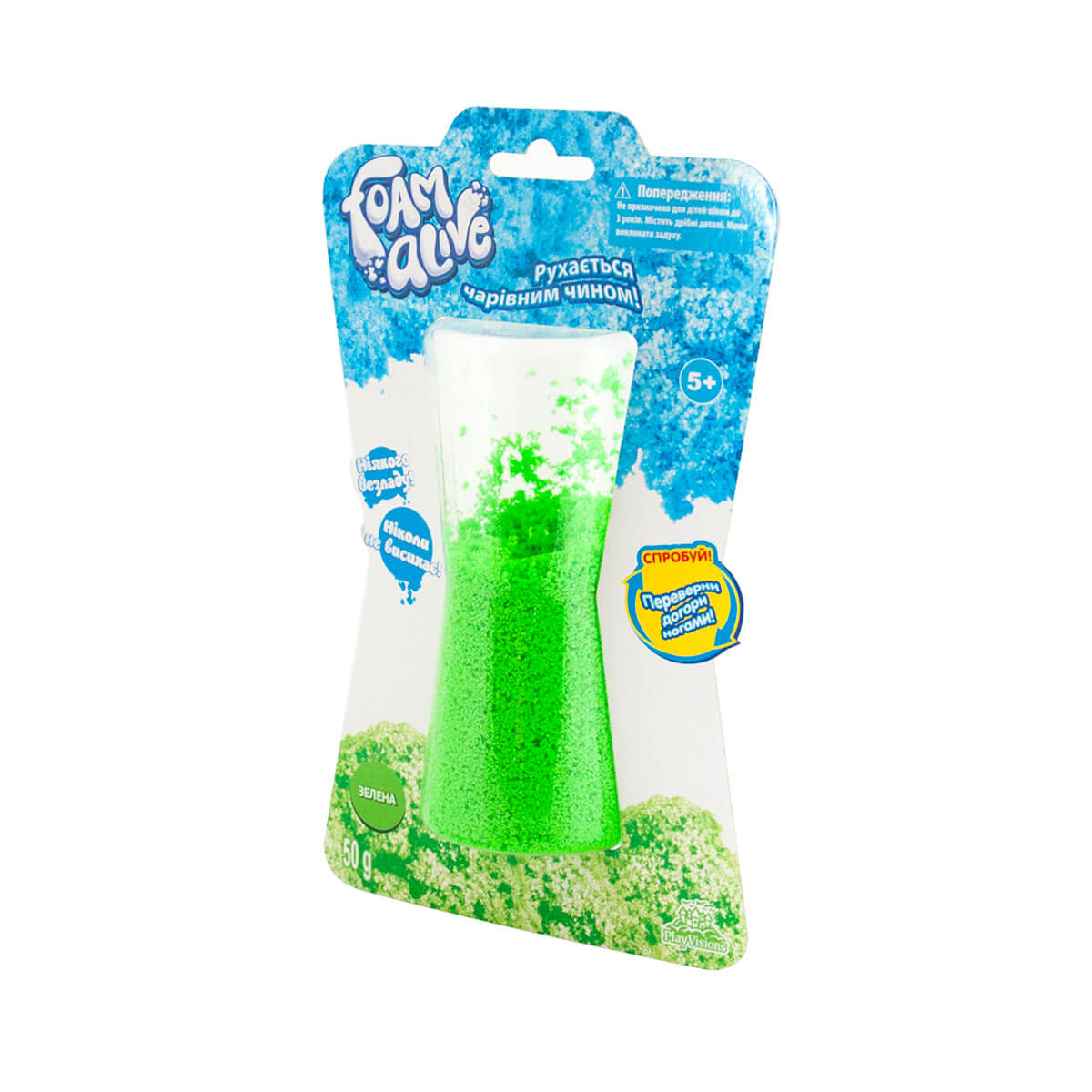 Повітряна піна Foam Alive - це м'яка, жмакательна «жива» речовина, яка чарівно «оживає» в Ваших руках. Стисніть піну і спостерігайте, як вона тане і просочується крізь пальці. Ліплення позитивно впливає на розвиток дитячої психіки, знімає стрес, заспокоює. Піна залишає всі поверхні абсолютно чистими. Не висихає. У набір входить пісок зеленого кольору. Гра з Foam Alive розвиває уяву, дрібну моторику, творчі навички, кругозір. Рекомендовано для дітей віком від 5 років.