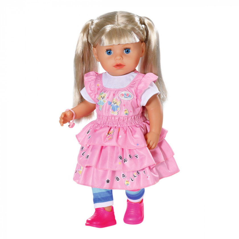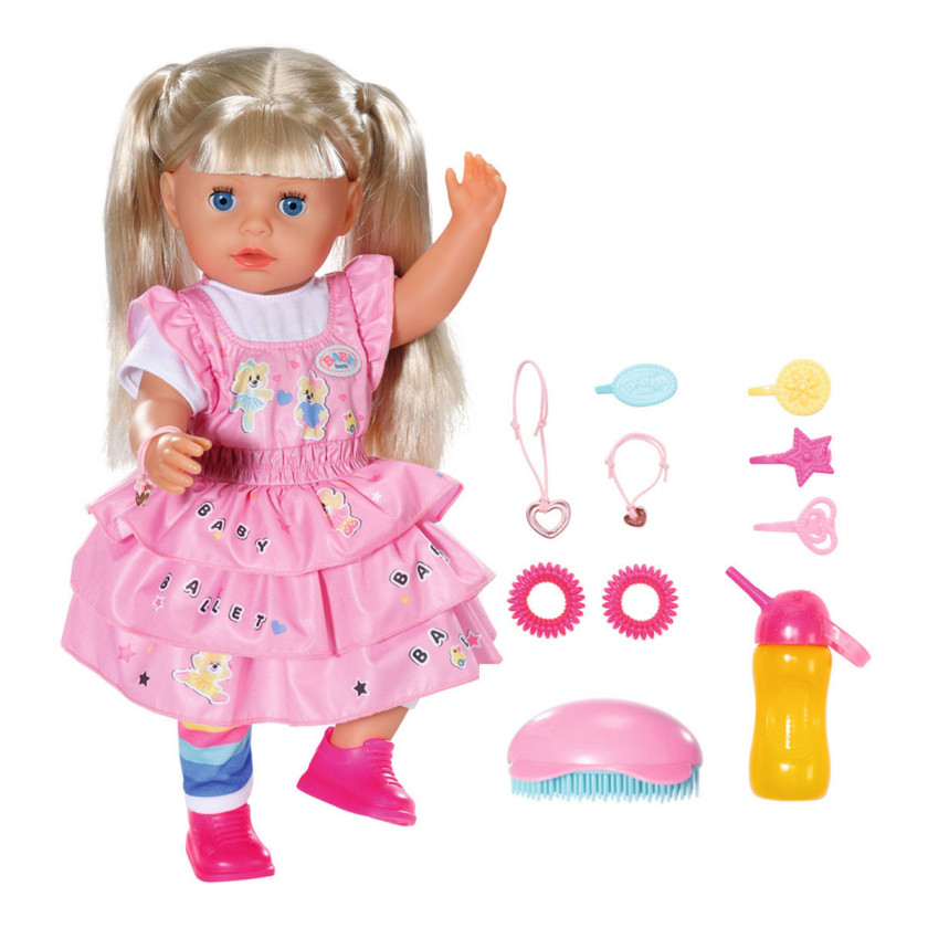 Лялька BABY born Молодша сестра 36 см - це дівчинка з довгим волоссям, яка має 7 чудових функцій, працюючих без батарей, і уміє стояти самостійно! Адже вона зовсім доросла, вдягнена у рожеву сукню і різнокольорові легінси. Ролеві ігри з лялькою підтримують розвиток соціальних навичок і цінностей, таких як відповідальність, спілкування і співчуття.