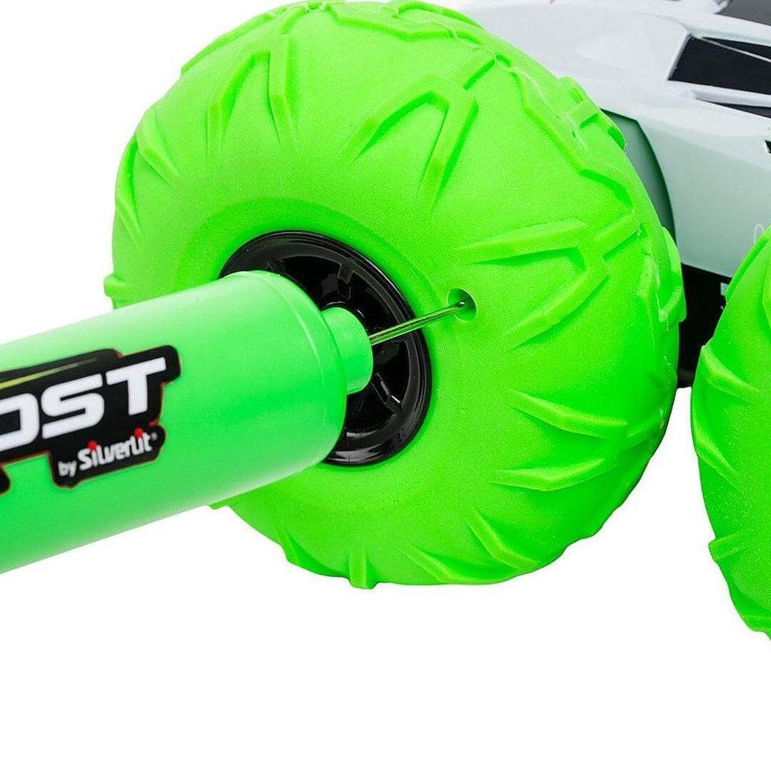 Позашляховик з великими колесами яскраво-зеленого кольору подолає будь-які перешкоди! Машинка Silverlit 360 Tornado розрахована на дітей від 5 років, які можуть впоратись з пультом керування. Стикаючись з перешкодою, машинка перевертається і продовжує рух. Може розвинути швидкість до 15 км на годину. Машинка зроблена в масштабі 1:10 відносно справжнього авто. Радіус дії пульта керування становить 20 метрів. Іграшка може працювати до 40 хвилин без підзарядки. Для живлення машинки необхідні 8 батарейок АА, для пульта керування – 1 батарейка 9V «Крона». Корпус машинки виготовлено з міцного, безпечного для дітей пластику. Іграшка розвиває координацію рухів, дрібну моторику, уяву. Артикул 800772.
