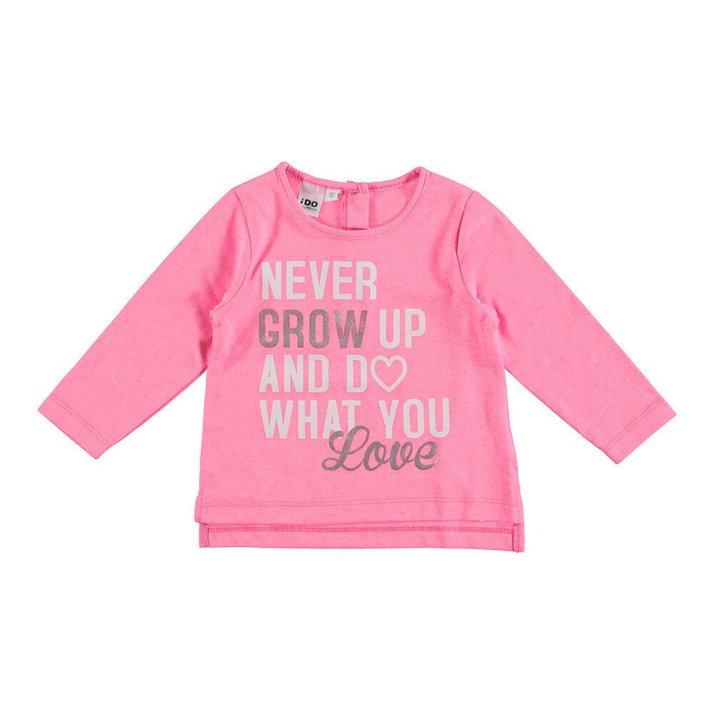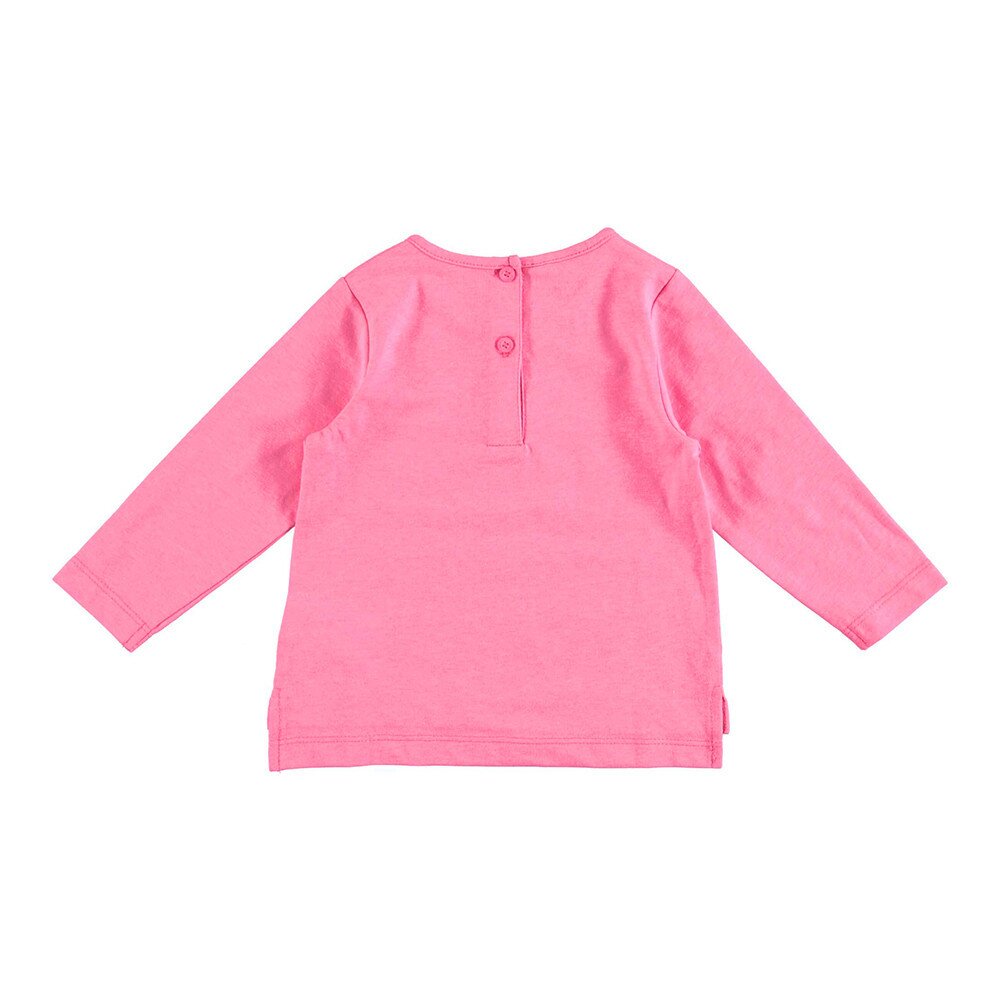 Мила трикотажна кофтинка для теплого весняного дня. Пошита з натуральної тканини - 100% бавовна. Має довгі рукава, круглу горловину. Застібається на спинці на ґудзики. Спинка довша за перед. Є невеликі розрізи по бокам. Окрасою переду служить принтований напис. Колір - рожевий.