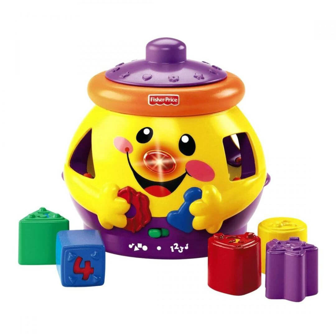 Іграшка-сортер з кумедними звуками, підбадьорливими фразами та пісеньками українською мовою. Рекомендована дітям з 6 місяців до 3 років. "Чарівний горщик" має чудове усміхнене личко з носиком-кнопочкою та п'ятьма отворами для геометричних форм. З сортером на малюка чекають справжні веселощі та захоплююче навчання. Дитина вивчить цифри від 1 до 5, геометричні фігури, кольори.