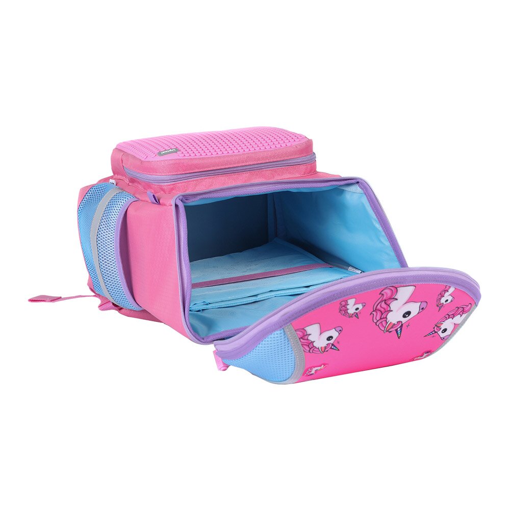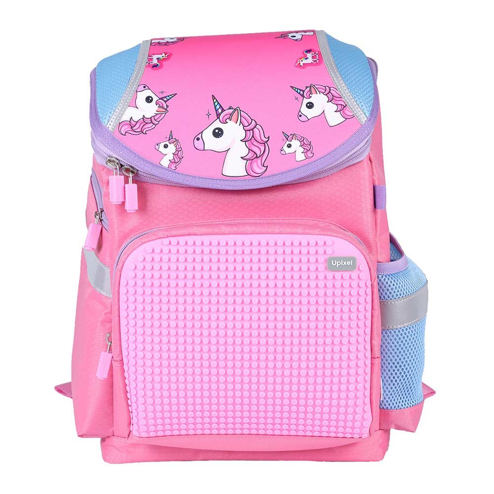 Рюкзак Super class school Єдиноріг Рожевий від бренду Upixel перетворить шкільні будні в казкові дні! Яскравий рожевий рюкзак з єдинорога дуже сподобається дитині. Основне відділення розділено на кілька додаткових. У них буде зручно розмістити зошити, книги і гаджети. Спереду є додаткова накладна кишеня на блискавці. З боків ще дві, одна з яких на блискавці, а інша на резинці. Спереду розміщена панель, на якій за допомогою пікселів можна створити малюнок. Спинка рюкзака жорстка, а довжина лямок регулюється. У наборі: рюкзак; пікселі для панелі. Рекомендовано для дівчаток від 6-ти років.