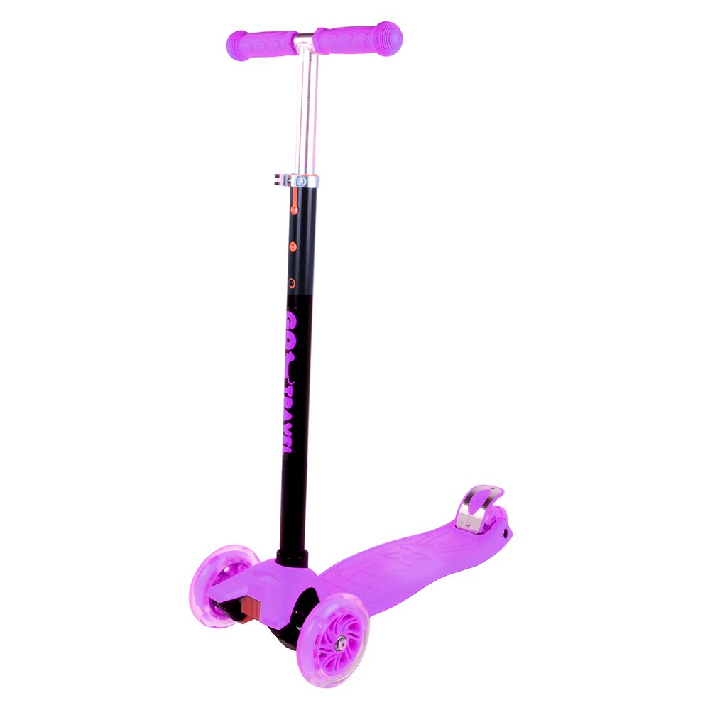 Самокат Go Travel Maxi – хороший варіант для першого самоката. Завдяки тому, що у нього 2 колеса спереду і 1 позаду, він стійкий і легкокерований. Для повороту потрібно лише нахилитися в потрібну сторону.